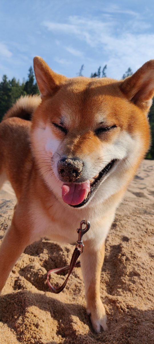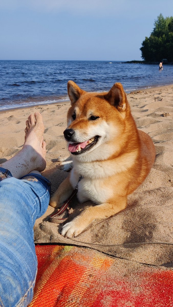 На обратном пути из ветеринарки заехали купаться на Ладогу. Вот собачкен не переживает - скачет молодым коником, копает на пляже нефть (а может и метро роет, не сказал) и всячески радуется жизни. Срочно все берем пример с него)