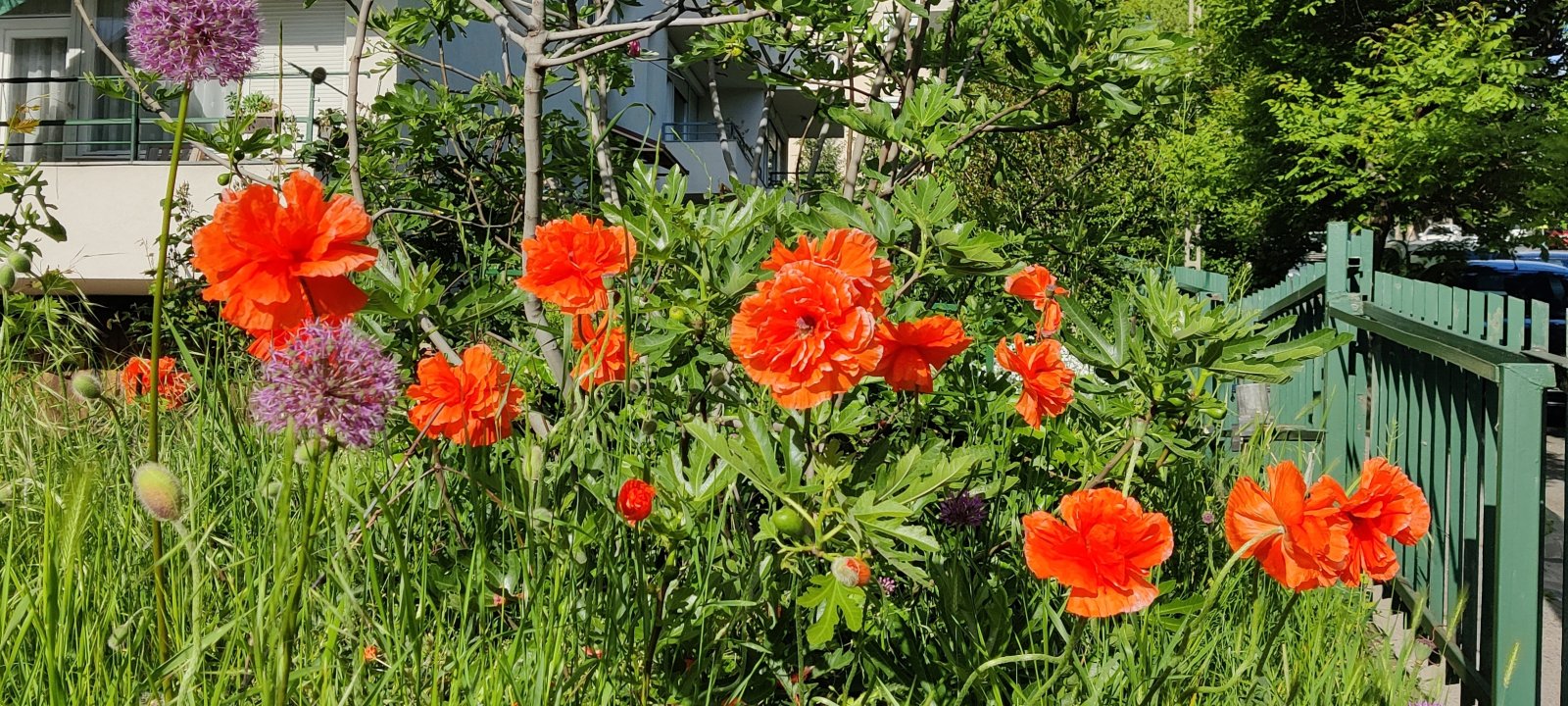 Невероятные просто маки на соседней улице, цветки как у пионов - в диаметре сантиметров по 15-20!