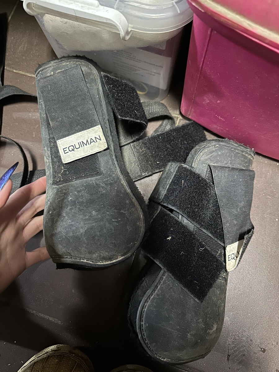 Породам б/у ногавки для лошади неопреоновые, размер Full, черного цвета, поношенные но в рабочем состоянии (на фото дефекты)