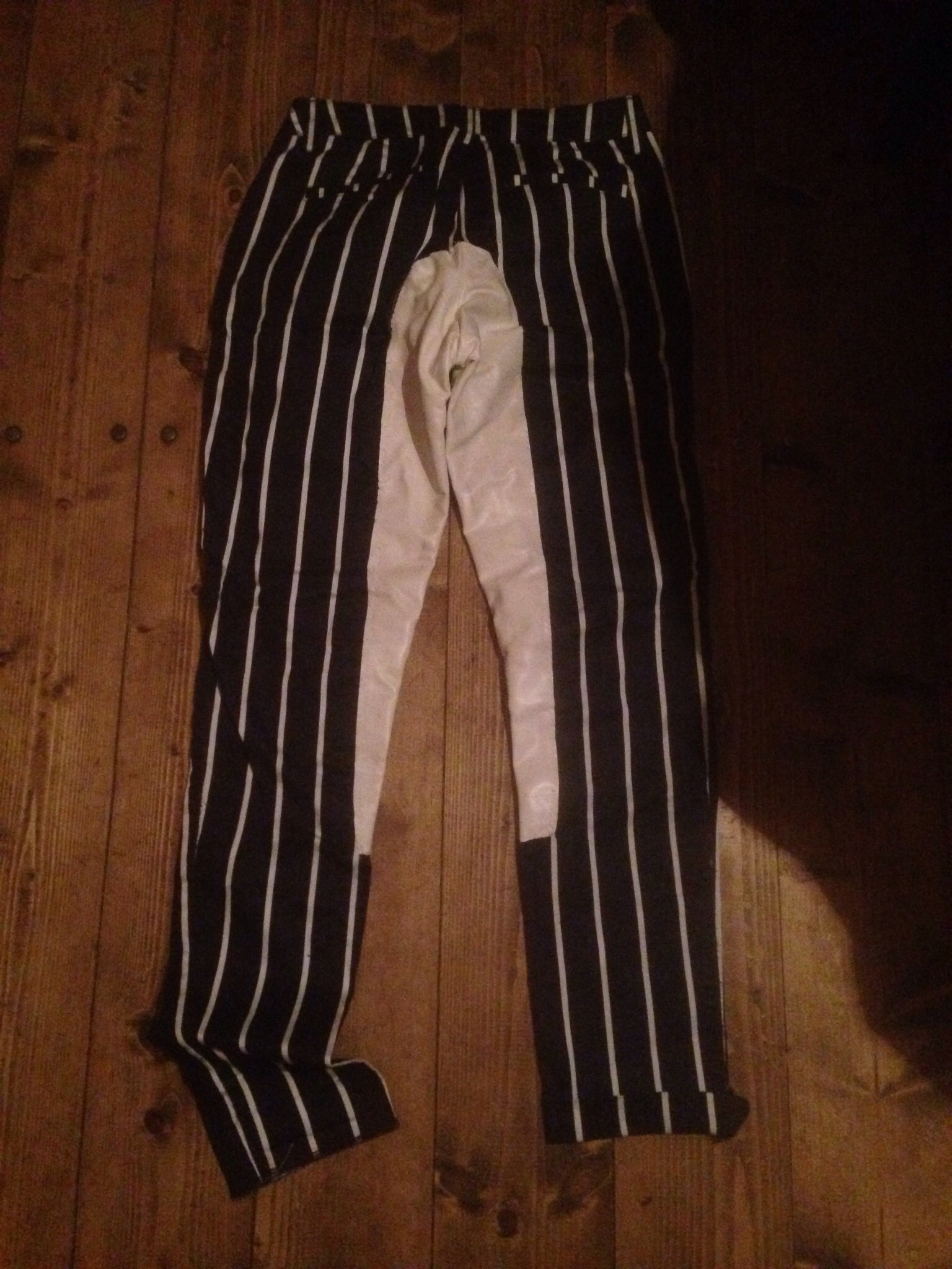 Продам новые бриджи с полной кожаной леей! Черные в белую полосочку! Очень красивые! Размер 42-44! Прошу 2500р В подарок кофточка!)