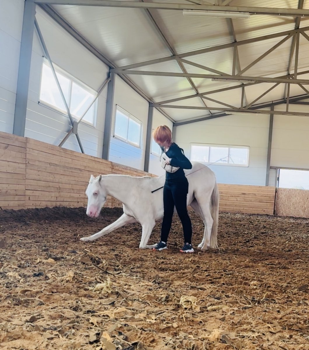 ?Кобыла знает много трюков. Ходит на вожжах без железа. Чистится, моется , бреется, расчищается, в коневоз с первого раза, ветеринарные мероприятия на ура) Накинула седло - без проблем, доверяет человеку.С заездкой проблем точно не будет.