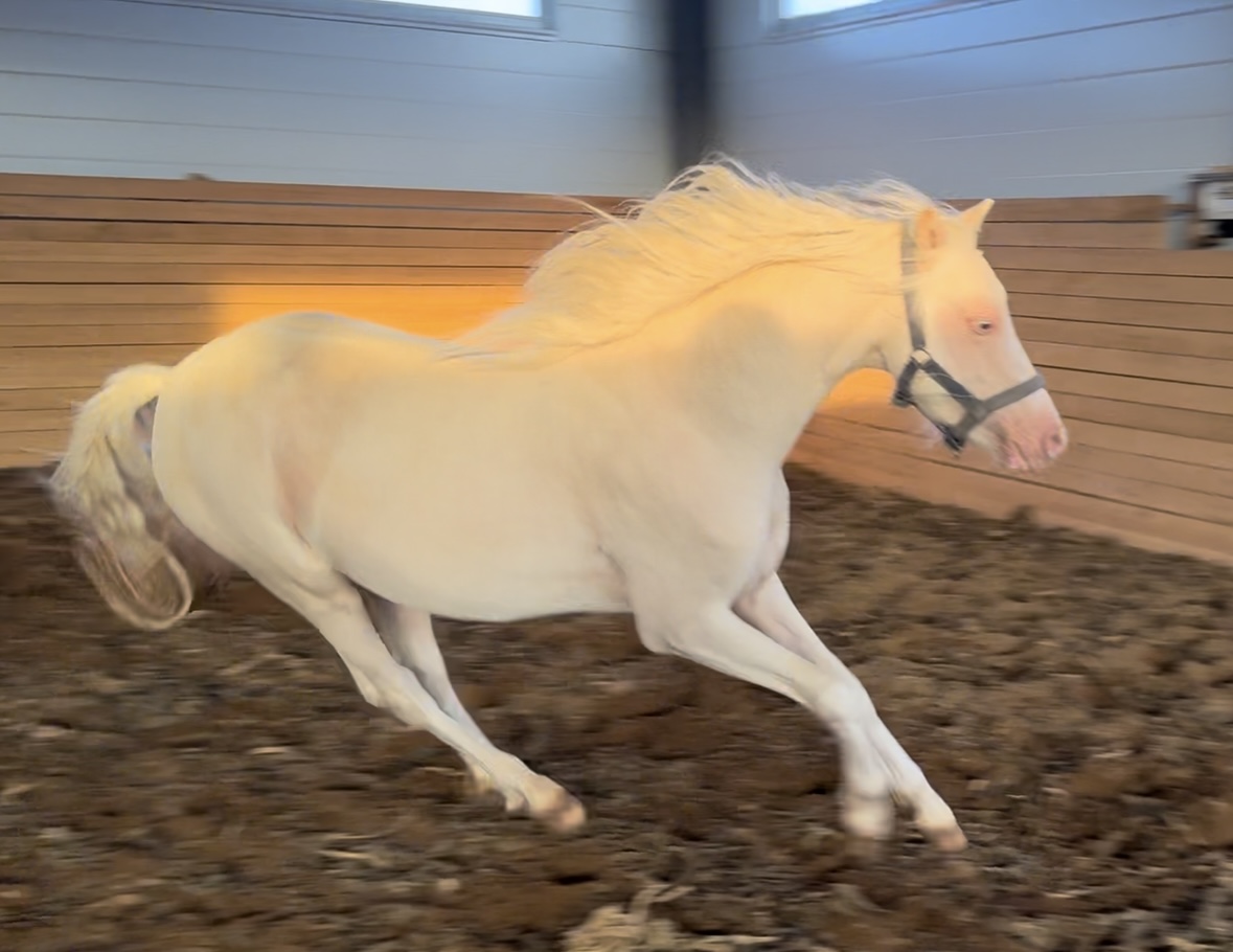 Отец эксклюзивный жеребец уэльский пони Ziрро's Меrlin изабелловой масти. Рост в холке под 140 см. Пони европейского уровня. Жеребец высоко оценен иностранными специалистами-породниками. Детские езды, конкур 100 см. . Есть стартовый опыт под берейтором. На крайних соревнованиях получил 71% за езду. На 3м фото.