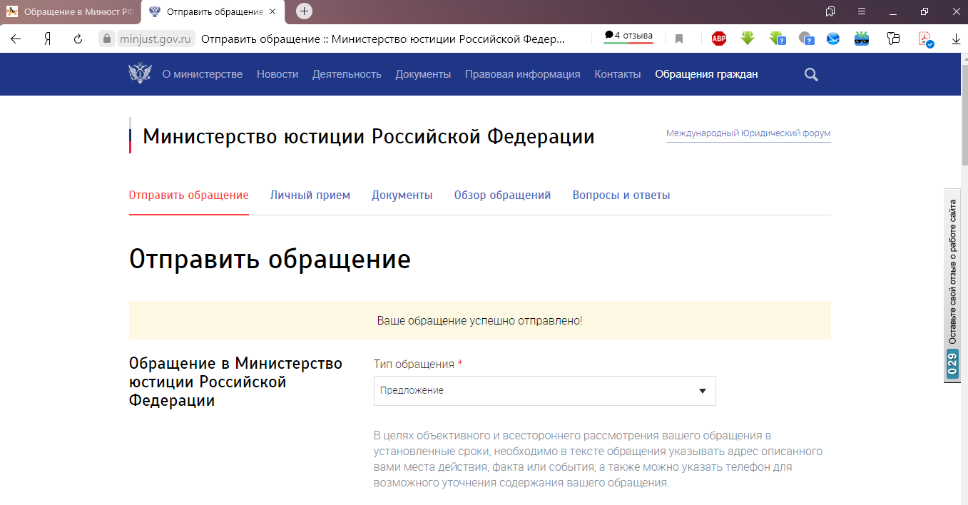 Обращение отправила.