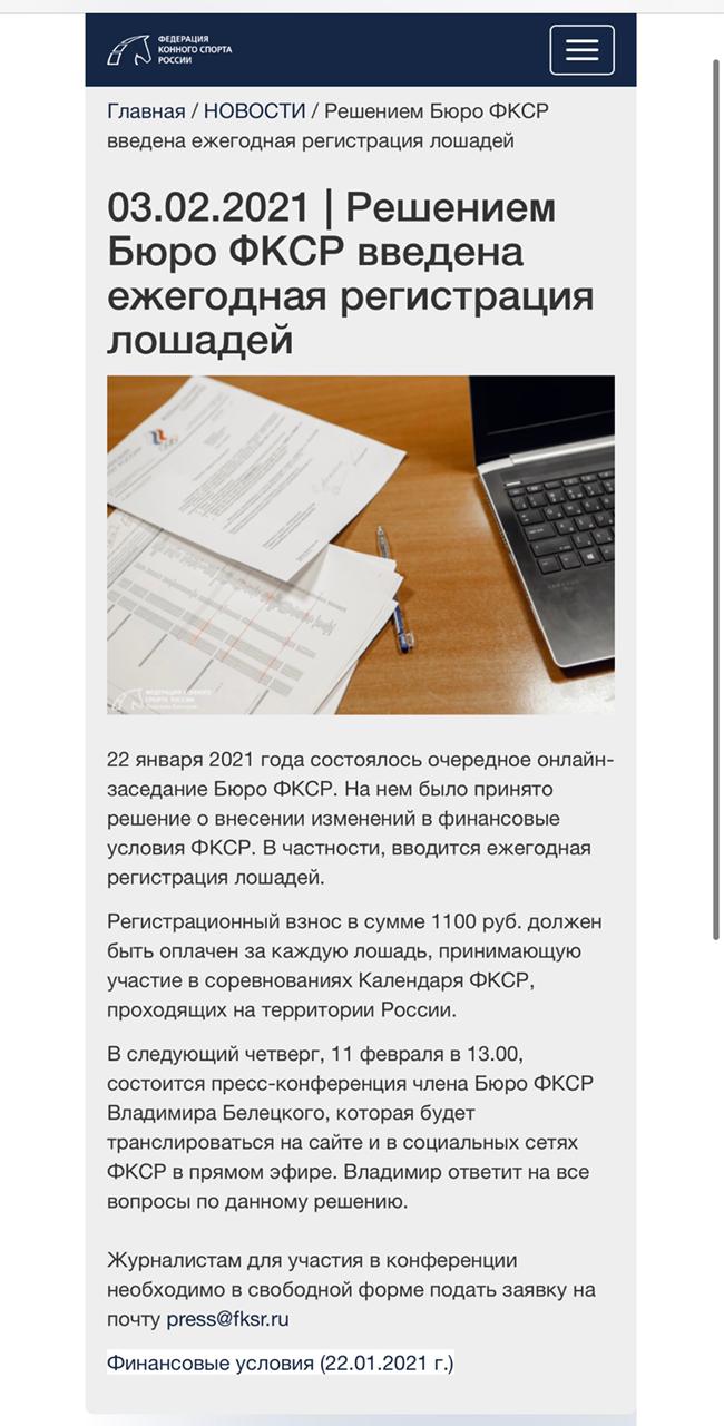 Коллеги, кто хочет побороться за признание Решения Бюро ФКСР от 22.01.2021 в части включения в текущие Финансовые условия нового взноса за стартующих лошадей в размере 1100 руб. неправомерным, предлагаем поддержать обращение в Минюст РФ.
