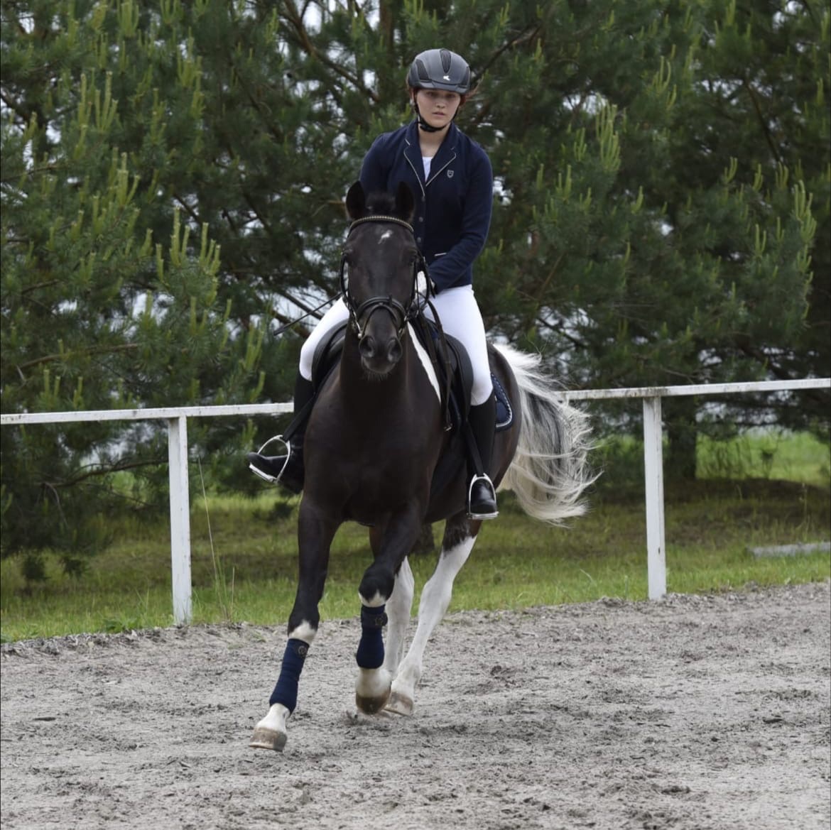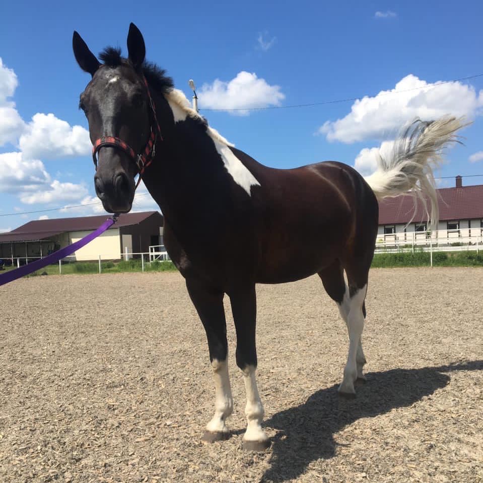 Мягкий на аллюрах и очень ласковый в обиходе. Отлично ходит в поля, не таскает. Хорошо грузится в коневоз, без проблем моется и стоит в солярии.