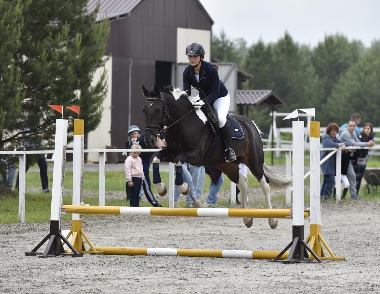 Прыгает под новичками до 100 см, на барьер идёт сам. Бегает в учебной смене. В одних руках перспективен выше, родная сестра прыгает маршруты 120-130.