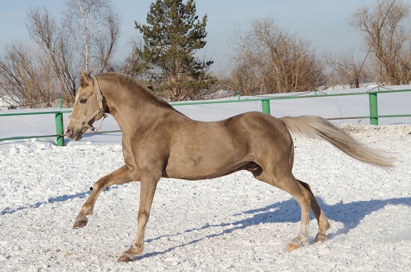 Это соловый Бисер. Родился в Омском КЗ, от тракененского Ишхана и полукровной Сахары. Красивый был парниша, невысокий. На этом форуме есть дневник его хозяйки, http://www.prokoni.ru/forum/threads/biser-ili-kon-v-meshke-kobyly-i-zherebjata-viva-la-vita.47801