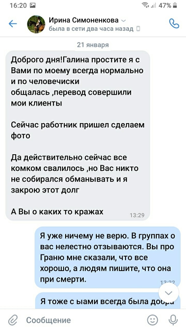в ходе нашего расследования, мы находим еще одну женщину - Христина. Христина выкупила лошадь у МИлы, Давинчи поехал в Псков. Спустя некоторое время по семейным обстаятельствам, лошадь пришлось вернуть спустя время. Мила дала согласие и сказала, что вернет деньги за лошадь обратно. за лошадью приехал коневоз, забрал лошадь, но Христина денег за эту лошадь так и не вернула. сейчас только остается догадываться о том, где эта лошадь находится.