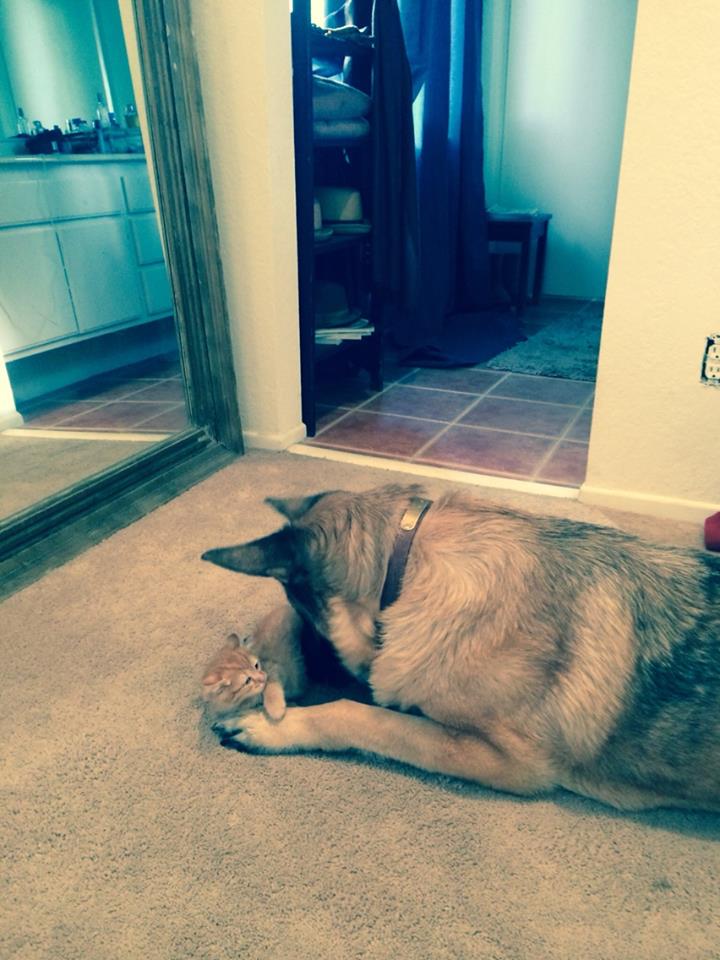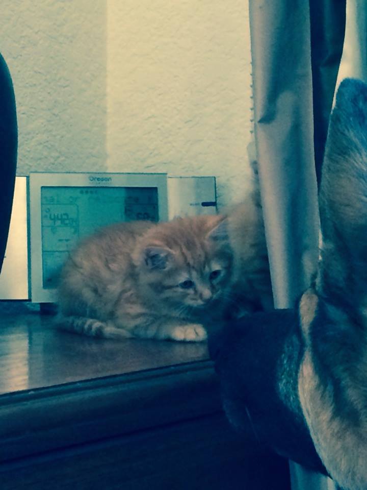 А братец уже вовсю прыгает козликом :mrgreen: , играет и пытается дружить с Клайдом. Но Клайд сцуко его всегда хочет куда-нибудь отнести и по дороге хорошенько обсосать - приходится ограничивать.