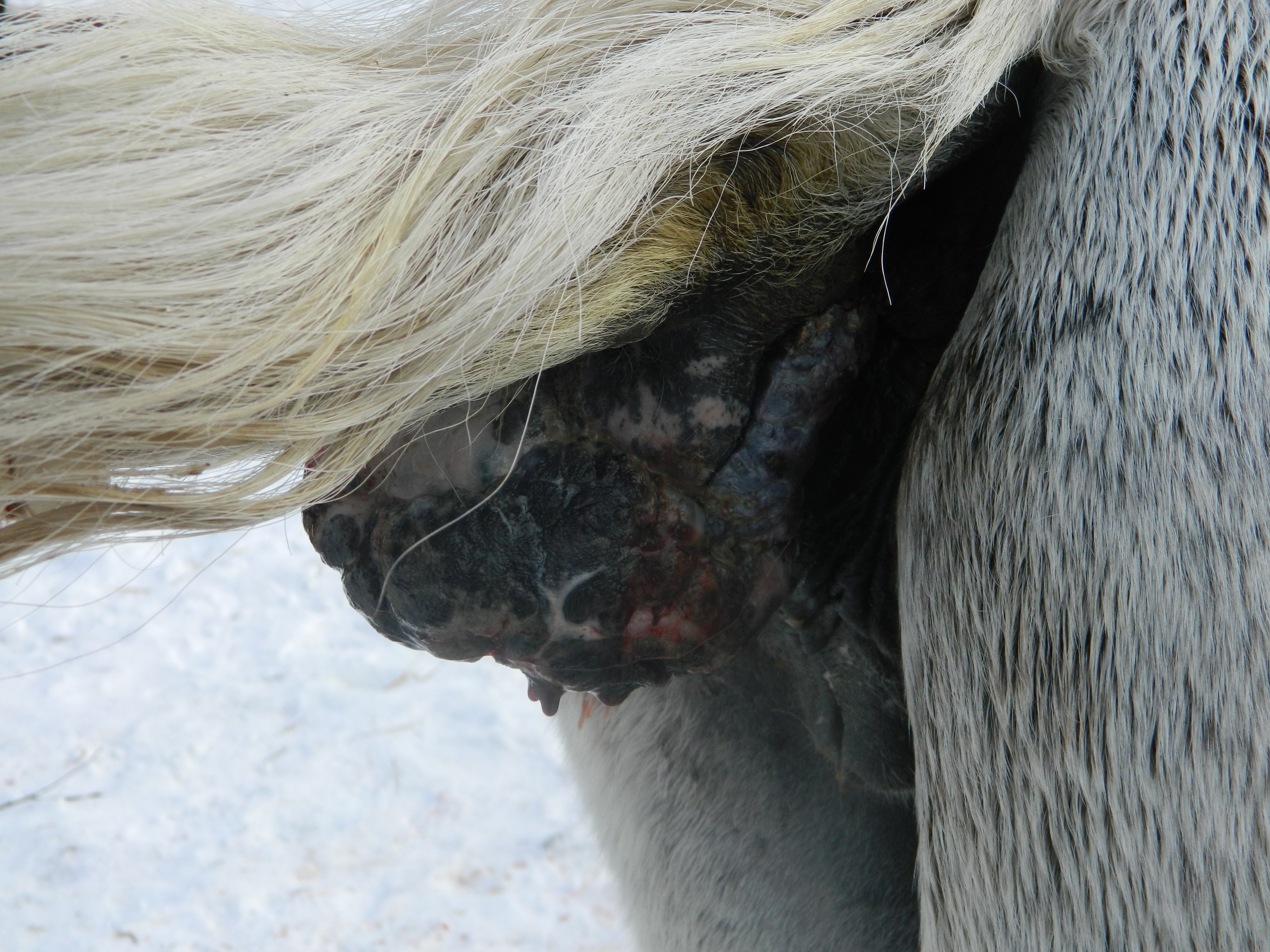 Потом за ней никто не следил, опухоль через день кровила, увеличивалась, а кобыла работала (прокатная лошадь)