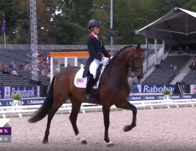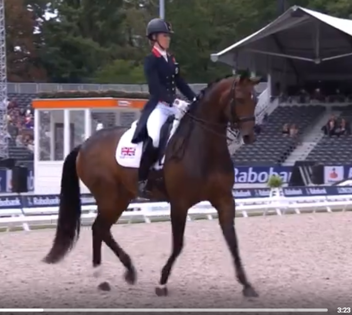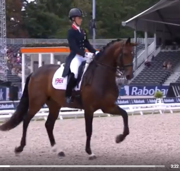Они же не дают там оценку по элементам, а общая оценка всегда запаздывают на элемент-два, а то и три местами (это если следить по тем случаям, когда они добавляют строку и показывают каждый элемент в ней), потому что они пересчитывают оценку только когда все судьи проставили за него оценку. Поэтому это вполне может быть за один из предыдущих элементов, а оценка за пассаж-пиаффе приходит позже. Плюс если посмотреть езду там считай 3 оценки (вот пример): отдельно оценивается пассаж до, отдельно пиаффе, отдельно переход пассаж-пиаффе-пассажПримерно с 3:12 по 3:25 исполняется переход пассаж-пиаффе-пассаж, и на 3:23 переход происходит через шаг. При этом, общая оценка после выполнения перехода меняется с 84,018 на 84,444. Это оценка за пиаффе увеличила общую оценку (и сам переход не оценивается) или оценка за переход в пассаж через шаг?