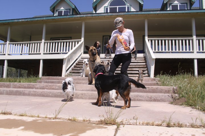 На территории гуляет табун, где серых мустангов два. Меня снарядили на отлов, при этом честно предупредили, что один - объезженный, а второй - дичок, а внешне очень похожи (вот ведь, таки подсовывают диких мустангов). И, приколисты, приготовились сидеть и ждать, на ком я появлюсь. К своему счастью, табун я не нашла - поехали потом с хозяйкой на машине, так что родео не получилось.