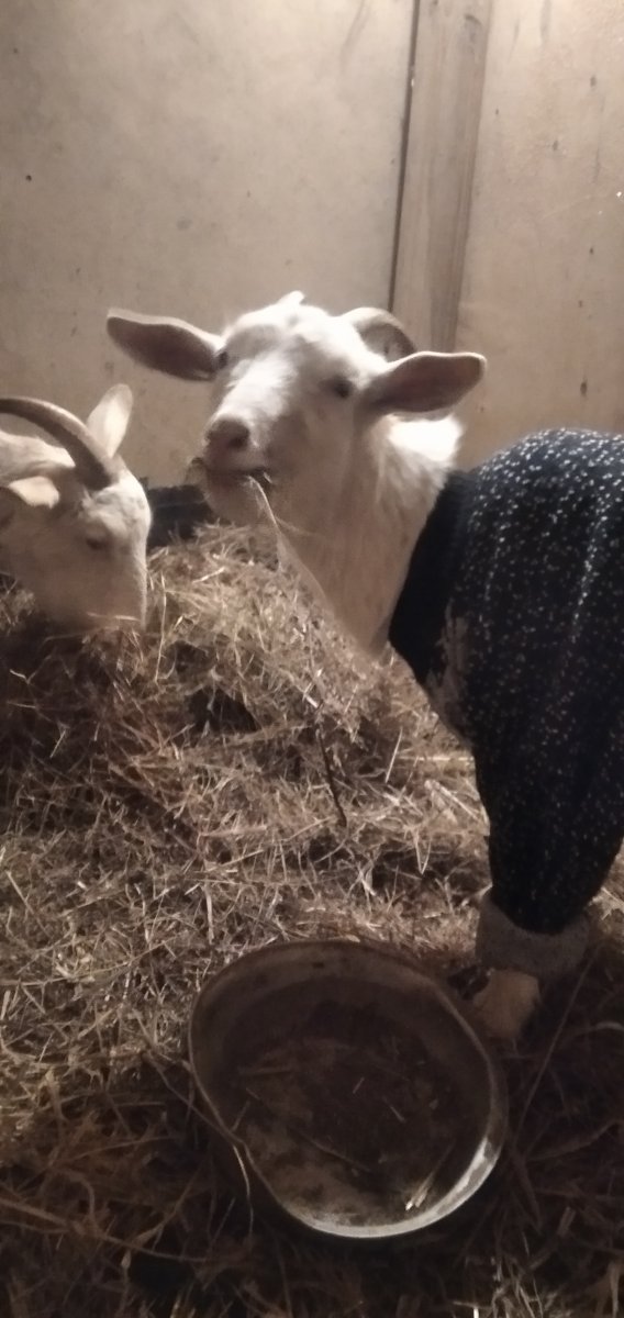 Козы тоже бодры. У коз есть один минус - какают где попало))). Весь коридор конюшенный закакали - хоть бусы собирай из их шариков))).