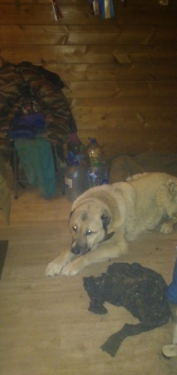 Ночь пережили благополучно. Овчарка умница - ничего не разнесла на веранде, спокойно спала на ватнике.