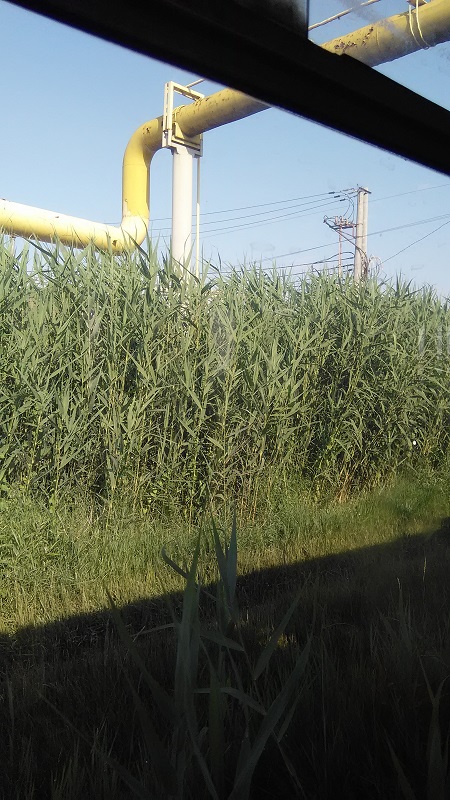 Итак, первый этап - едем трамваем № 20 под нефтезаводом, среди камышей, к конечной остановке перед дамбой и окружной дорогой. Ехать недалеко, сохранились 2 или 3 старинных павильона остановок. Почему в такой глуши трамвай? Для чего? Для кого?