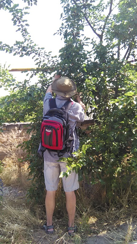 И вновь по улицам села - и обнаружили 2 дерева шелковицы со спелыми ягодами: на одном - розовые. на другом - чёрные. Растут за забором, вне участка, но всё равно чьи-то. Однако во дворе тишина... Невозможно удержаться!