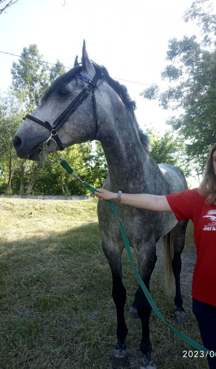 Желательно не под совсем начинающего всадника. К человеку относится хорошо, под седлом спокойный, но много энергии. Продаётся по причине нехватки времени. Не жеребцует. На кобыл и жеребцов не обращает никакого внимания.