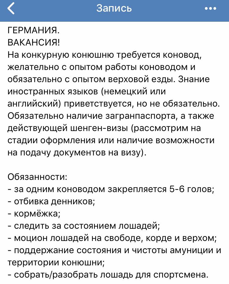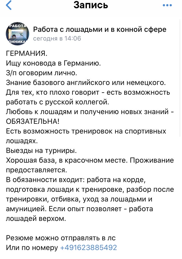 Обычно я не пишу таких постов, но сейчас, с холодной головой, я приняла решение написать, чтобы следующие девочки, которые соберутся ехать к этому человеку, хотя бы имели шанс найти информацию о нем в интернете. Когда я собиралась ехать, я не нашла ничего кроме того что в 2007 году он был замечен как конкурист. Но я решила что в конном мире ничего страшного не бывает, и поехала по вакансии, не собрав достаточных сведений.