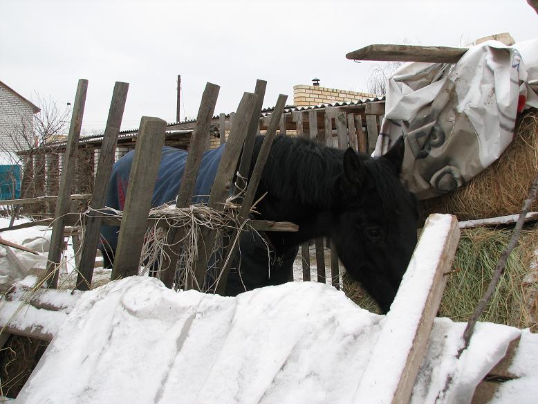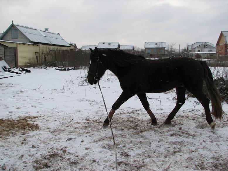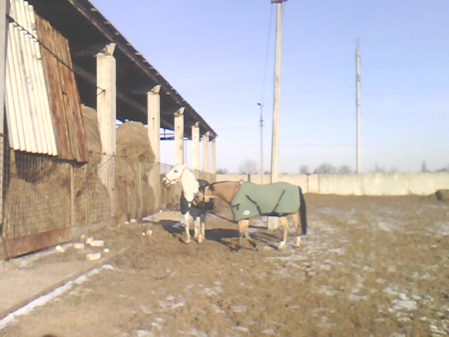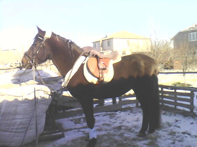 За то время пока не писала у нас уже успело потеплеть,один день даже дождь шел!Сегодня всего -3.День посвятили поездке по конным магазинам.Купила темно -зеленые ногавки Сакуру и РЕЗИНОВЫЙ тазик Парусу(2 резино-пластиковых он убил :? ),а то он последнюю неделю с пола ел.Грунта нет!В понедельник шел дождь,во вторник вдарил мороз и выпал снег.В итоге лед под снегом :| .Работаю на корде на кругу который навозом засыпала,только он и спасает.