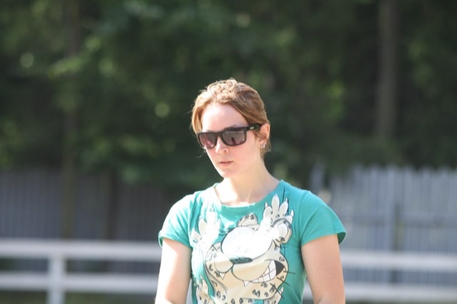 Мане Форсайд не понравился. Ей не понравились бортики в манеже, которые на солнце очень сильно отсвечивали на фоне темного грунта, не понравилась граница между плиткой и асфальтом, не понравилась резина перед манежем. Но еще больше ей не понравились витые бортики на боевом поле. В принципе, ее вообще не вдохновила идея выйти из прохладного манежа на жаркое боевое поле. Что поделать, пришлось ее тащить на себе всю езду. ?