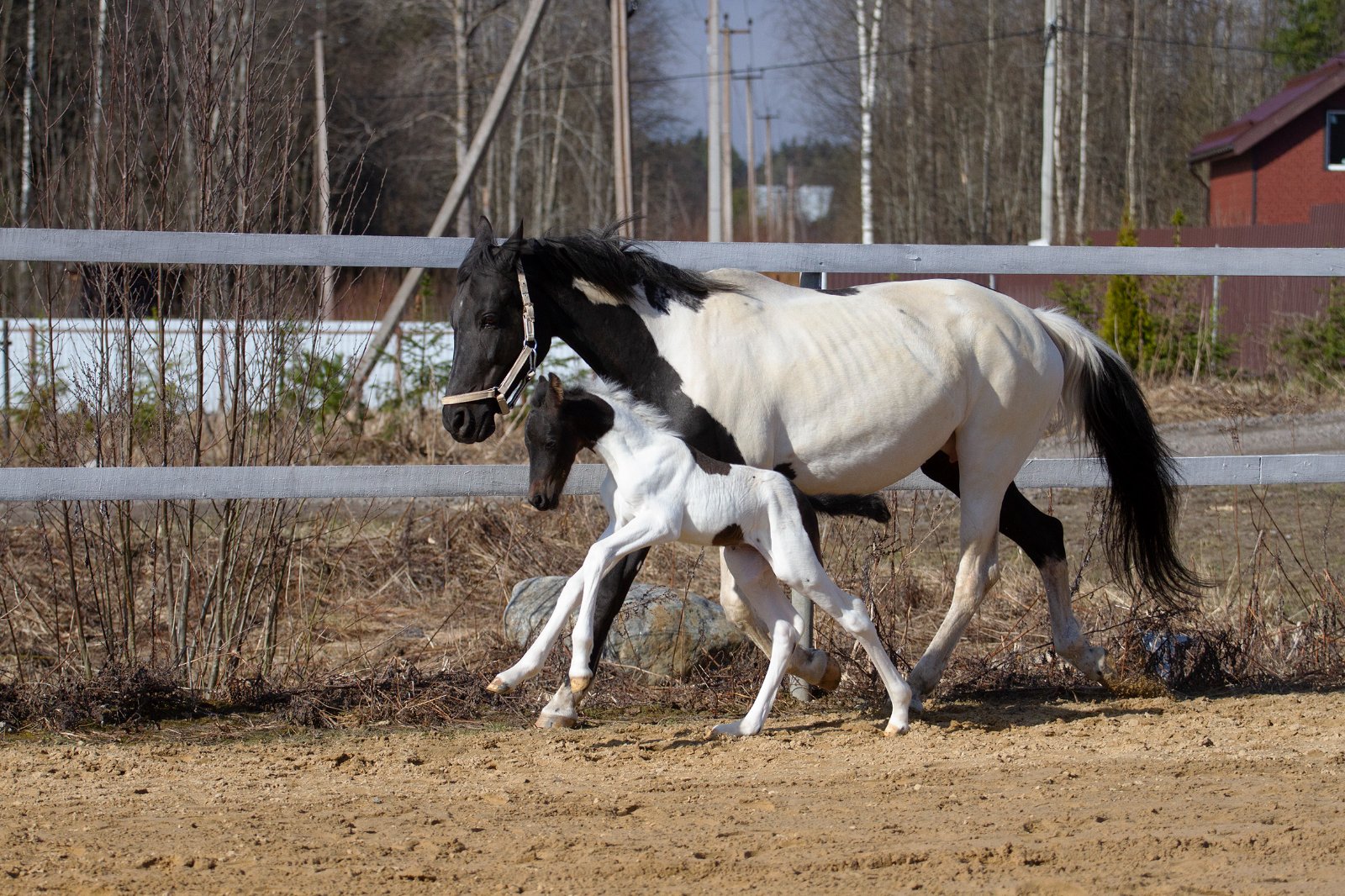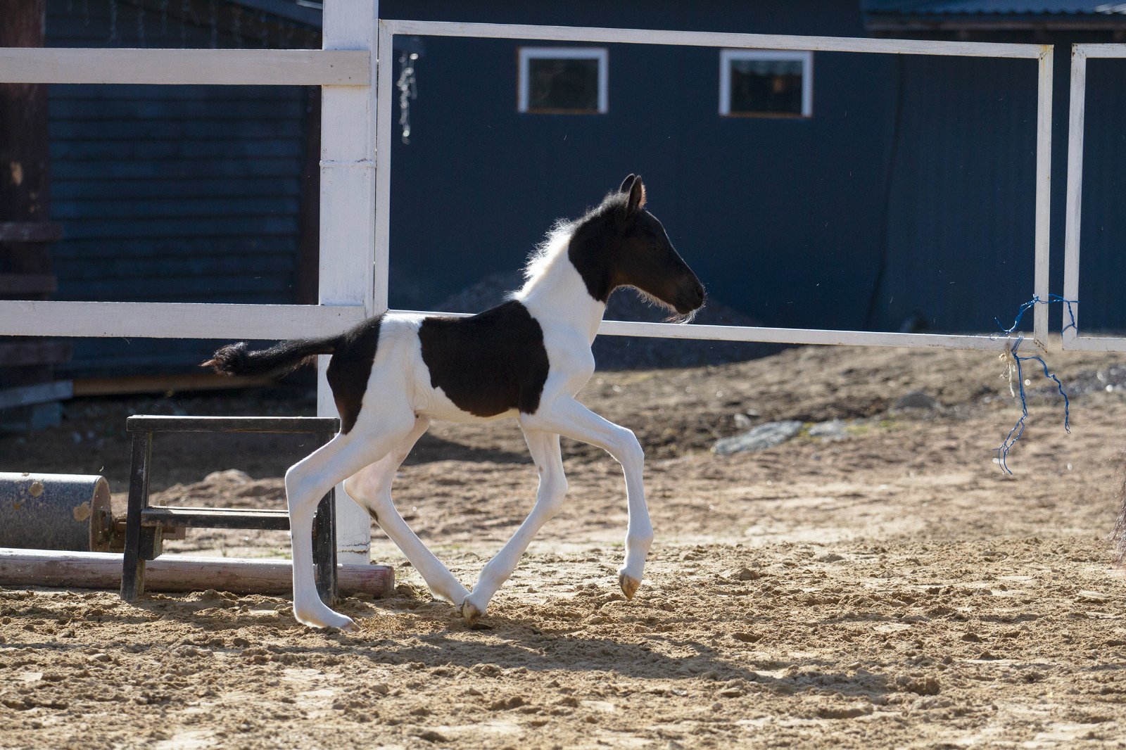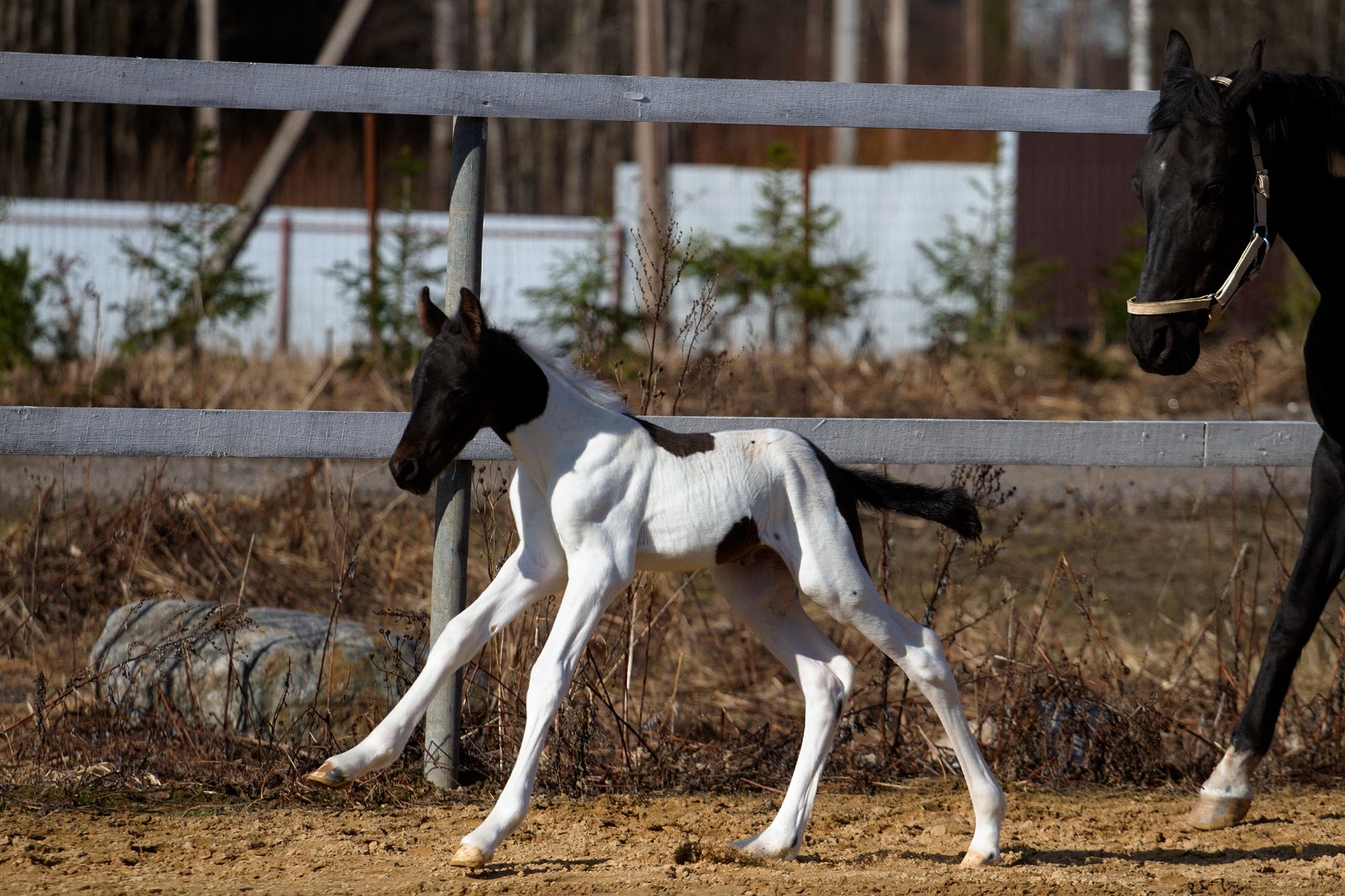 Ну что же. В этом году наш фриз Джеф впервые стал папой. Детеныш родился с ногами балерины и очень хулиганскими глазами