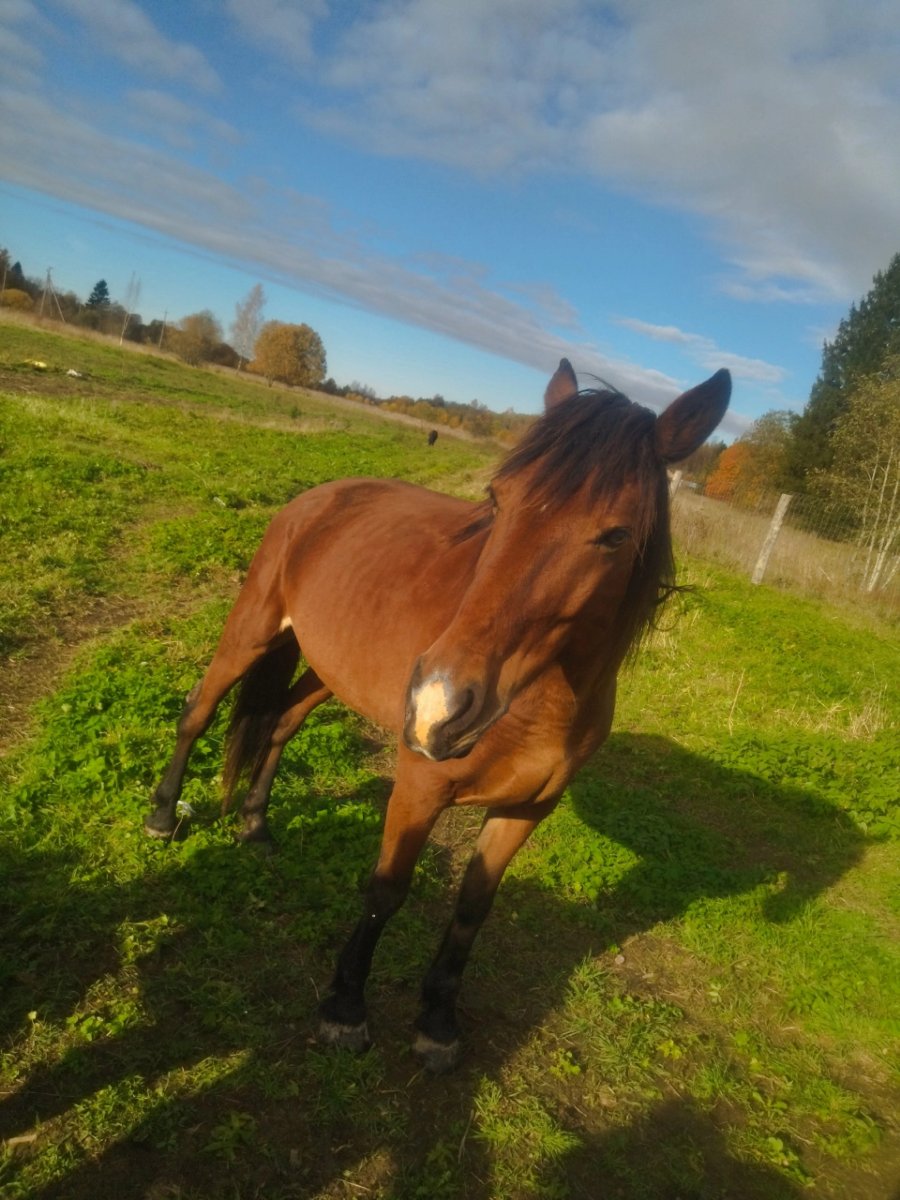 .. Срочно ищет руки кобыла- ветеран проката, около 13 лет, старая травма поясницы, ВЕРХОМ НЕ ВОЗИТ!!!, (возможно после лечения лёгкие нагрузки в упряжи). Последние 6 лет не несёт нагрузок, каждое нарушение запрета ведёт к ухудшению. Два раза уже меняла место по причине подорожания кормов и "нерентабельности содержания ", рентген не делался, лечение по факту только отсутствием нагрузок. Сейчас стоит в Волосовском районе, в "Подворье спасения лошадей", у хозяйки сложности и она вдвое сокращает поголовье, нашу лошадь держать больше не может. Отлично подойдёт как лошадь- компаньон к верховой или пони, ласковая, с другими лошадьми не конфликтует. Рациональный совет " на колбасу" не возможен к исполнению, лошадь не мучается, на воле не хромает, прошла с нами в городе огонь и воду, очень ищет работу газонокосилки! Справится также с охраной территории, следит за порядком, строит молодняк)). Очень ищет дом!!!