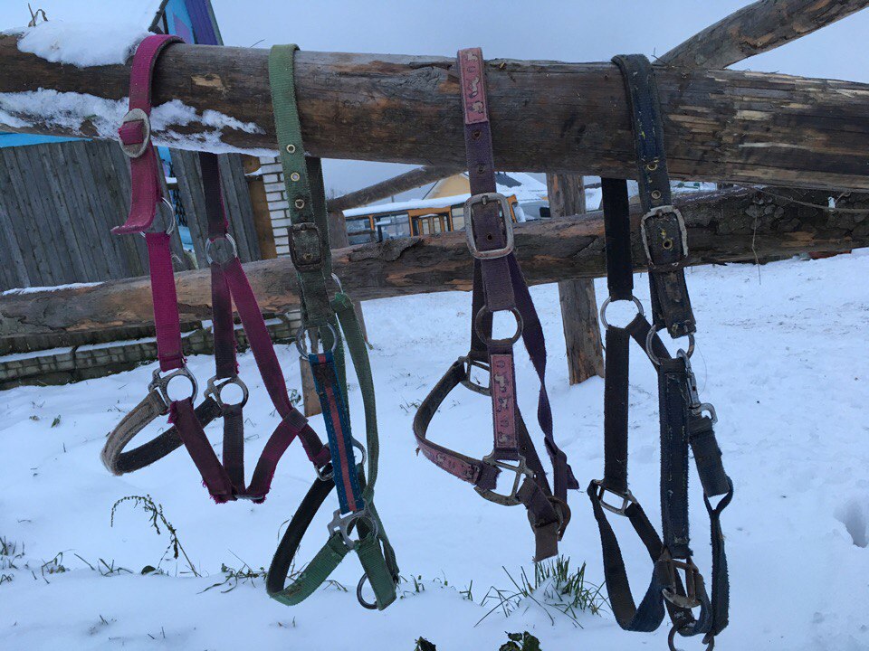 Нужны: развязки, попонодержатель, сметка (лучше натуральная), недоуздок на фулл (не кожаный).