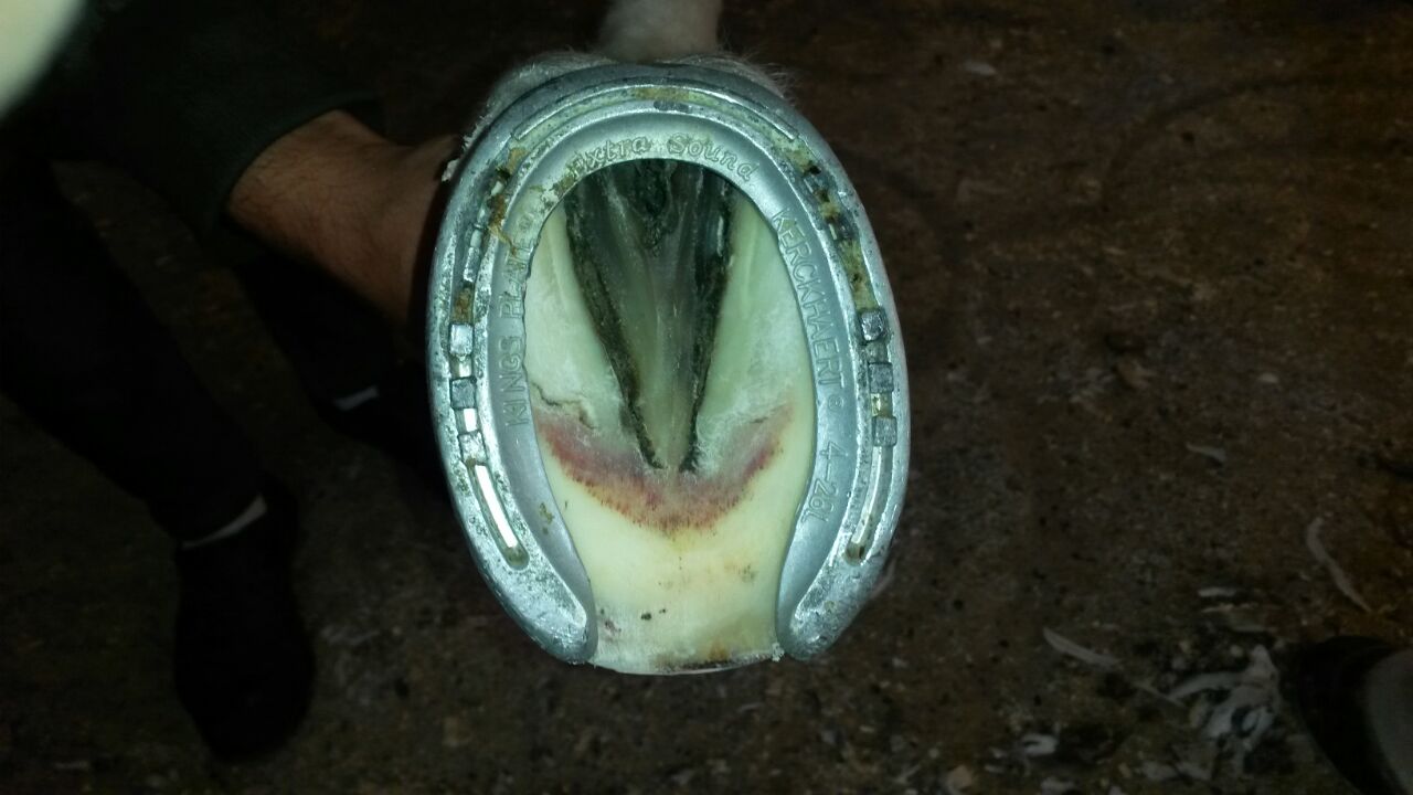 Кстати, некоторое время назад отрывала обратную подкову с ламинитного копыта. И там тоже был выпилен зацеп, хотя на копыте предполагалось еще и отслоение стенки. До этого она просто ковалась, как обычно. Что интересно: вторая (тоже ламинитная) нога была подкована на обычную подкову. Месяц с лишним лошадь жила с такой красотой. В итоге на копыте четко заметно, что за этвремя произошел еще один поворот. То есть, пока ее ковали без затей, был хронический ламинит не в ужас-ужас степени, а когда подковали вот так вот - ситуация на этой ноге стала намного хуже.. я удивляюсь, как кость не вылезла вообще.