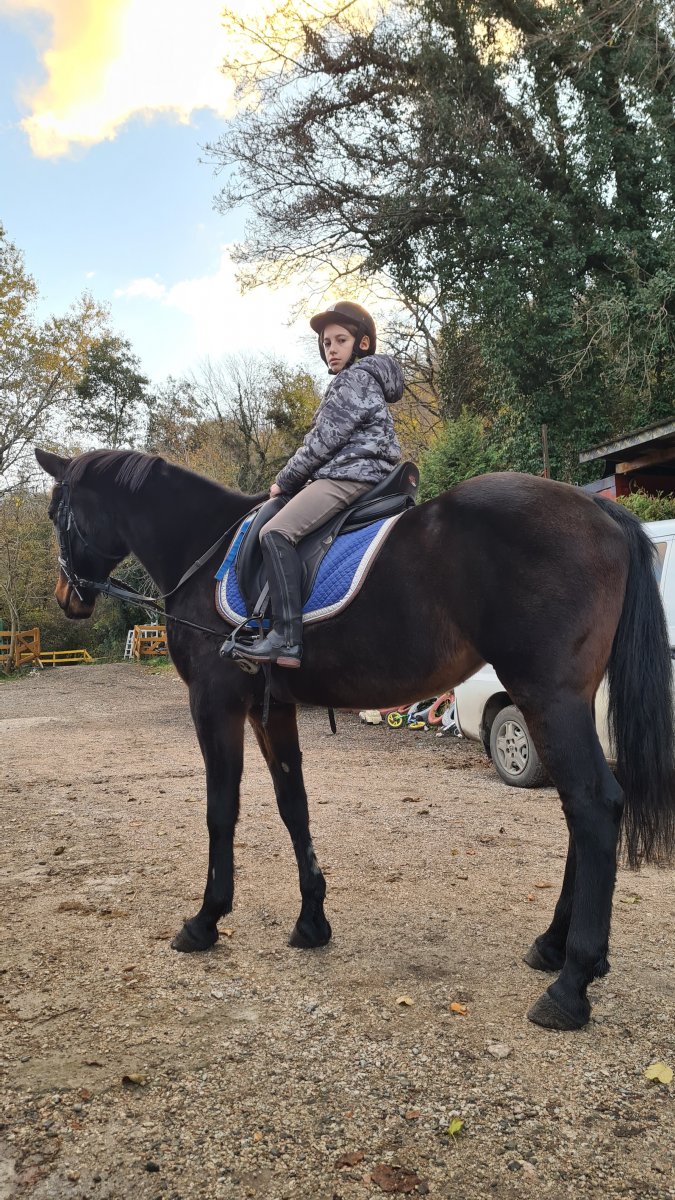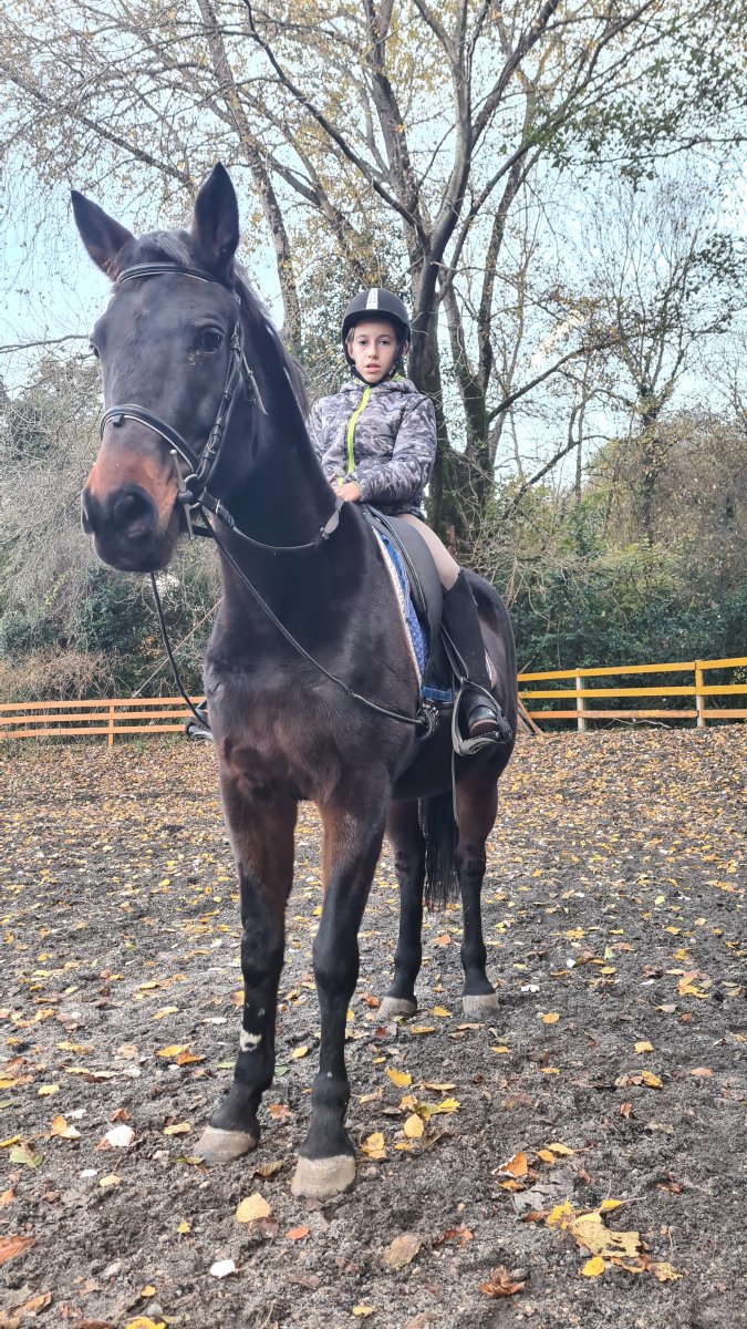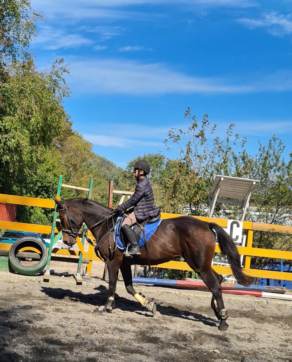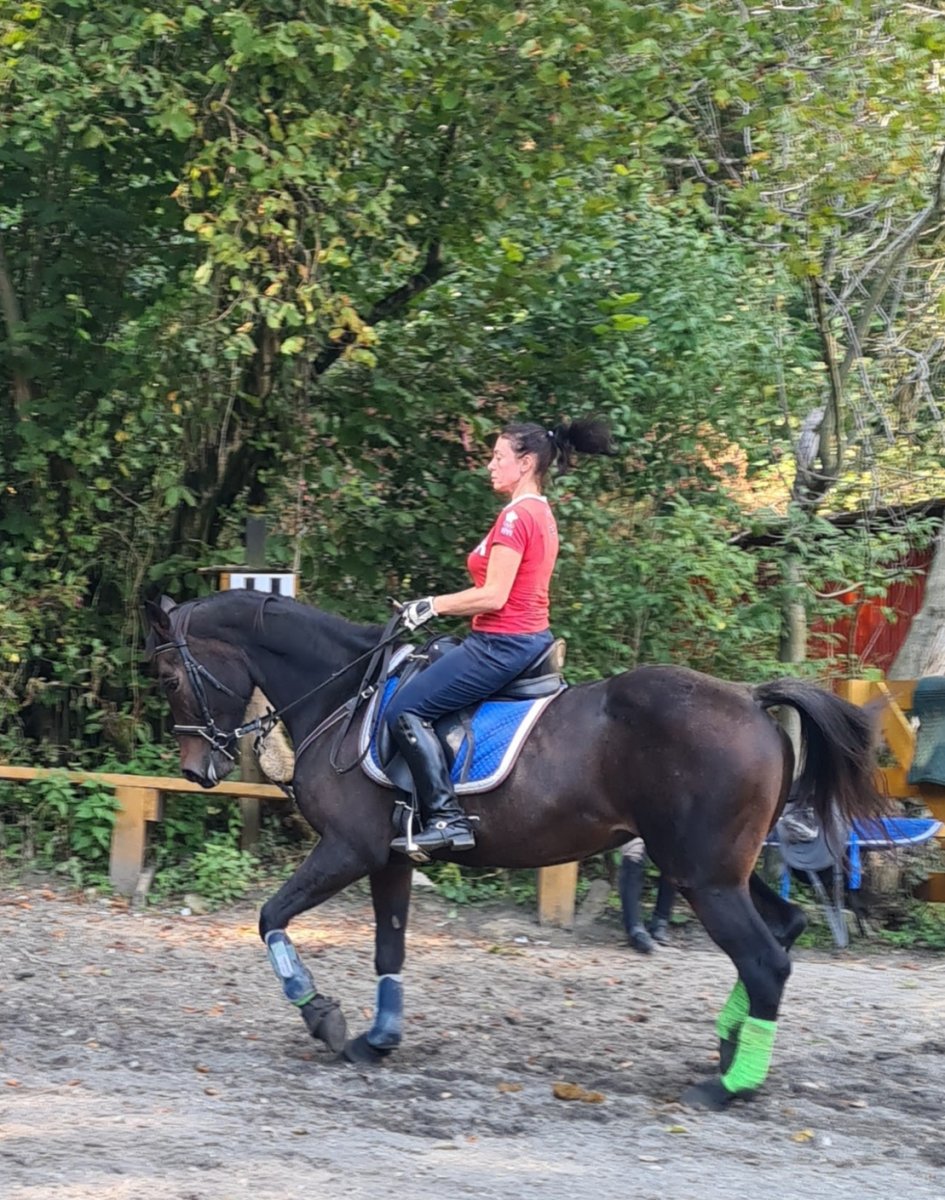 Стартует по детским ездам. Напрыгана до 80 см, но я брала под выездку, не прыгали. Очень спокойная и управляемая лошадь, справится даже слабый ребенок.