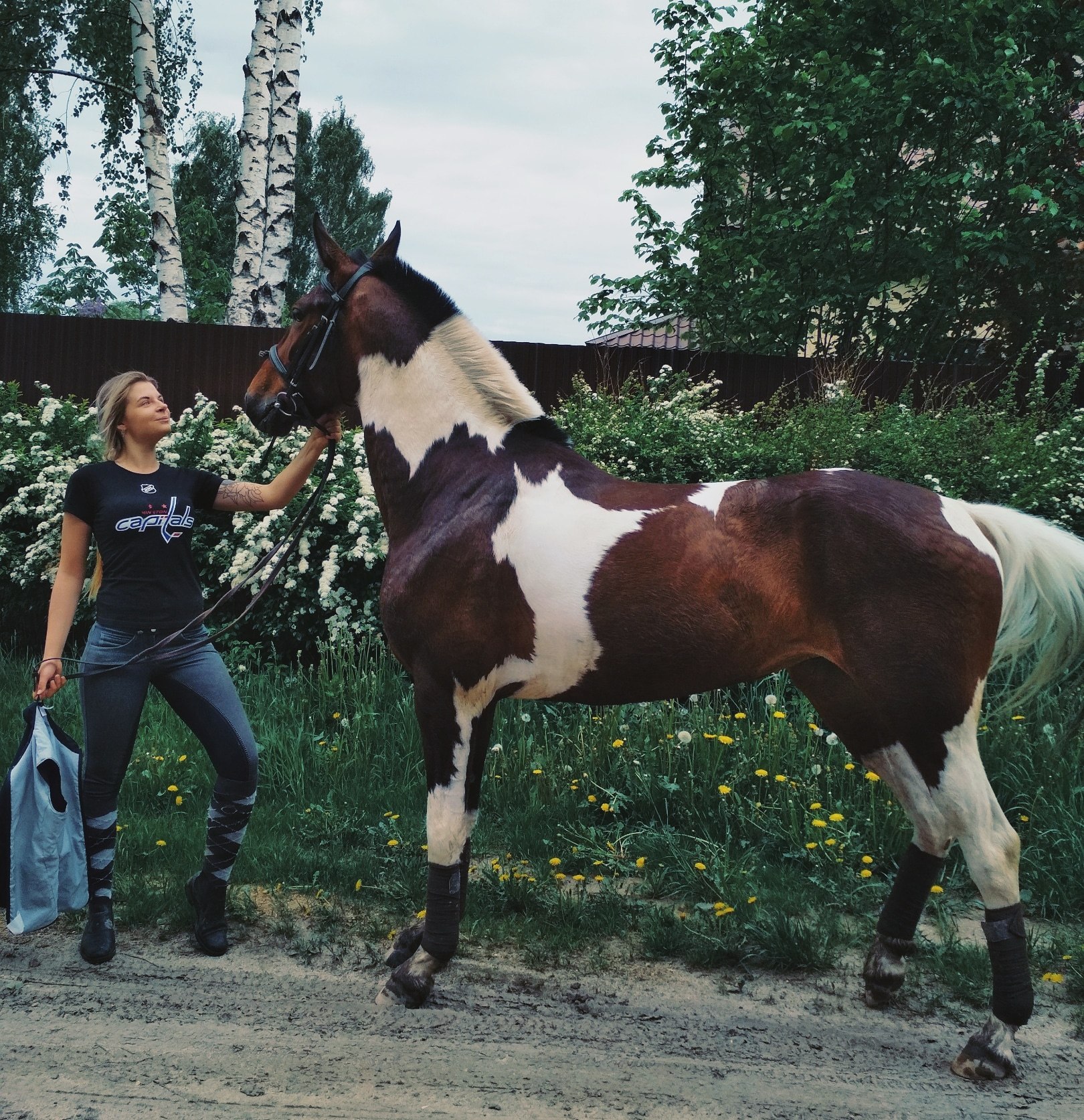 Сейчас знает все три аллюра, переходы, прыгает 80 под верхом, на свободе прыгает больше.