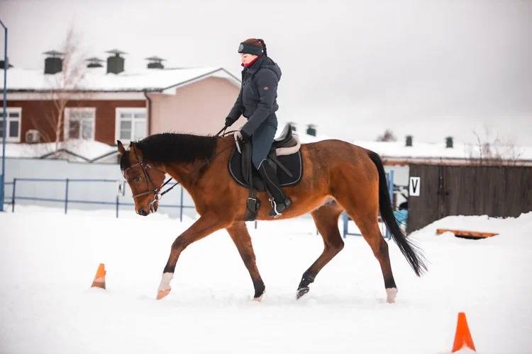 Лошадь на плацу бегала на корде, кто-то ещё скакал и он стал подпрыгивать.