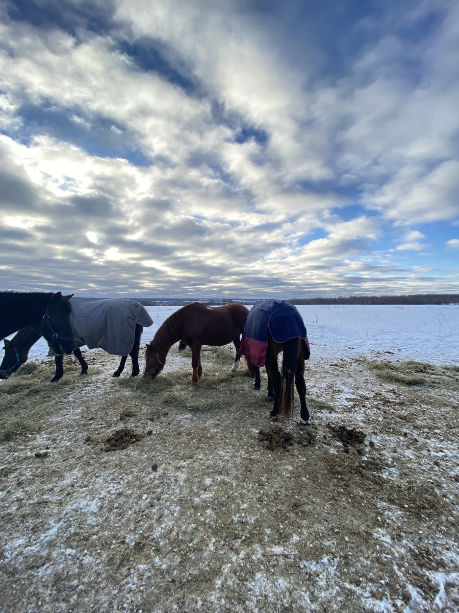 Потом я слезла, погребла навоз, помогла сесть частнице, подержала ее лошадь, села и почапали домой.