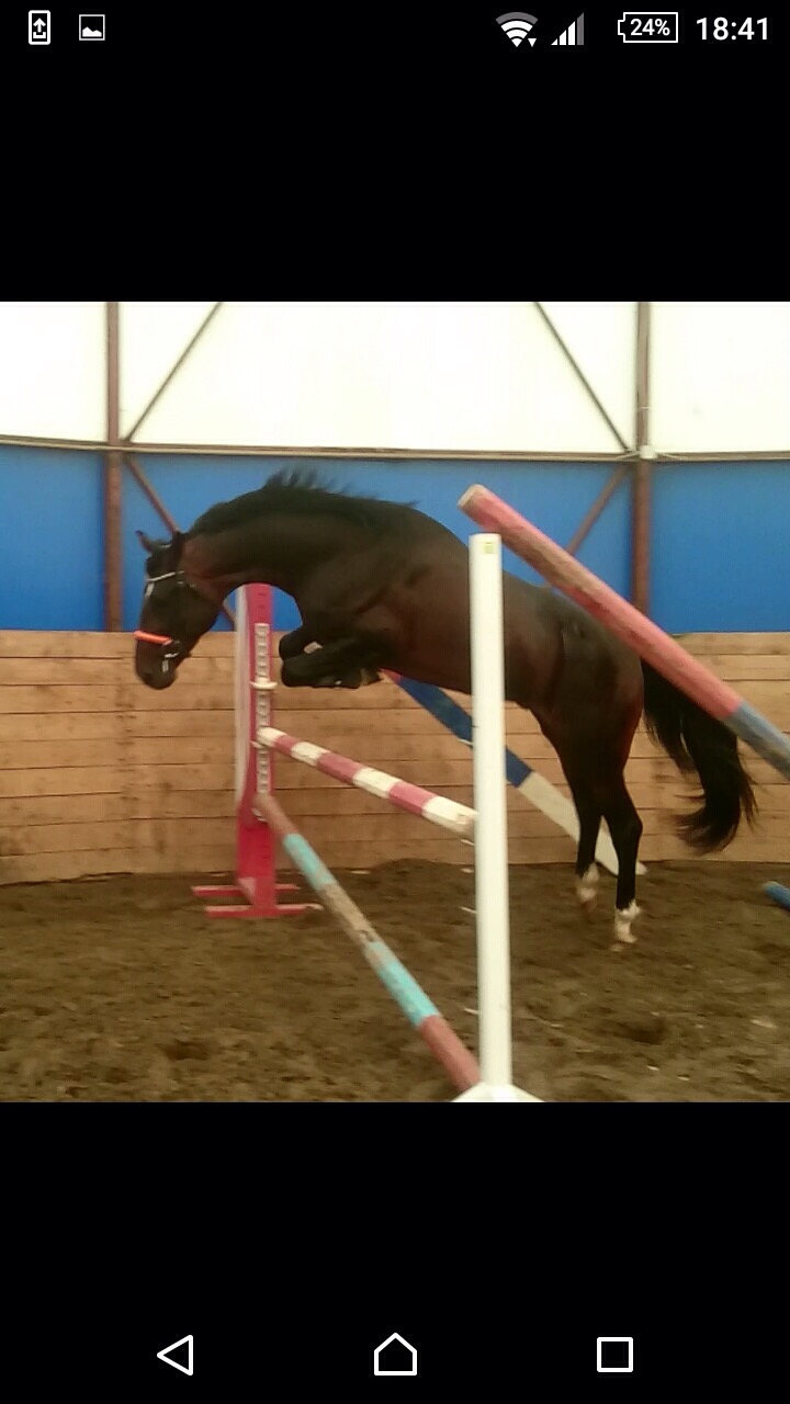 Заезжен под седло!Работает согласно возрасту,опытным берейтором,не форсируется!Начал прыгать под седлом!Есть видео первых прыжков!