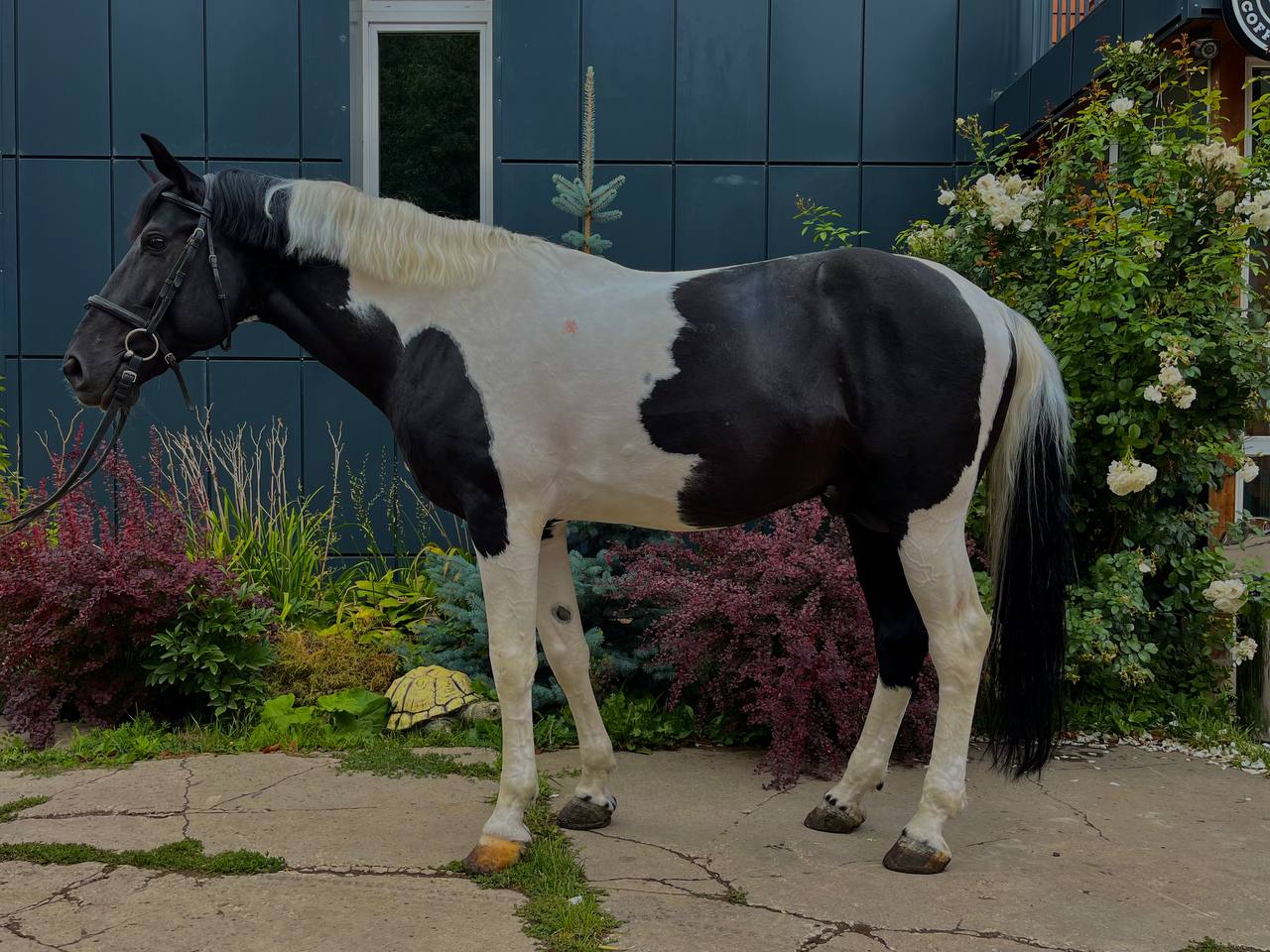 1. Пегий жеребец 2011 гр , рост 165 +, помесь с Русской верховой( мать русская верховая, отец помесь) Имеются документы ВНИИК и паспорт ФКСР.
