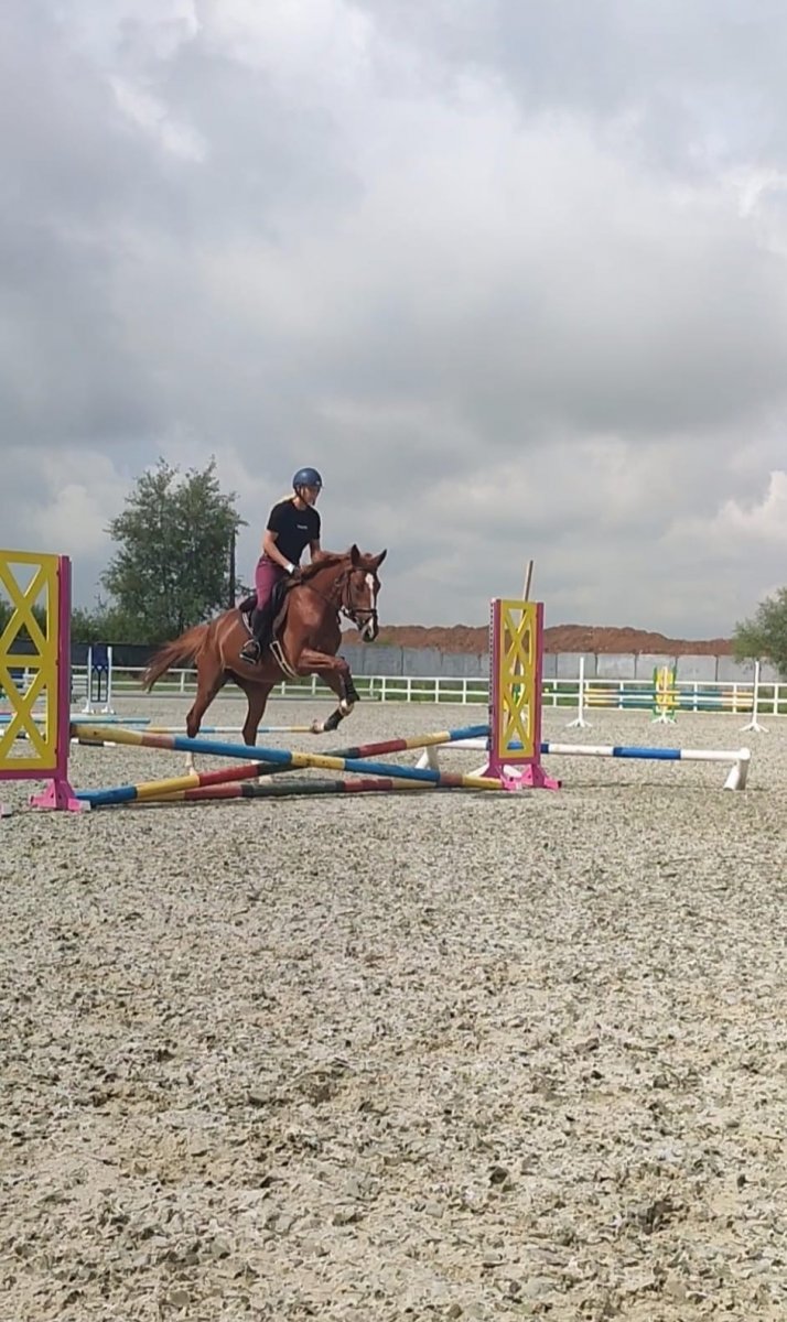 Лёгкая в управлении, понимающая команды всадника, удобная лошадь. Заезжена в июле, напрыгивается под седлом.