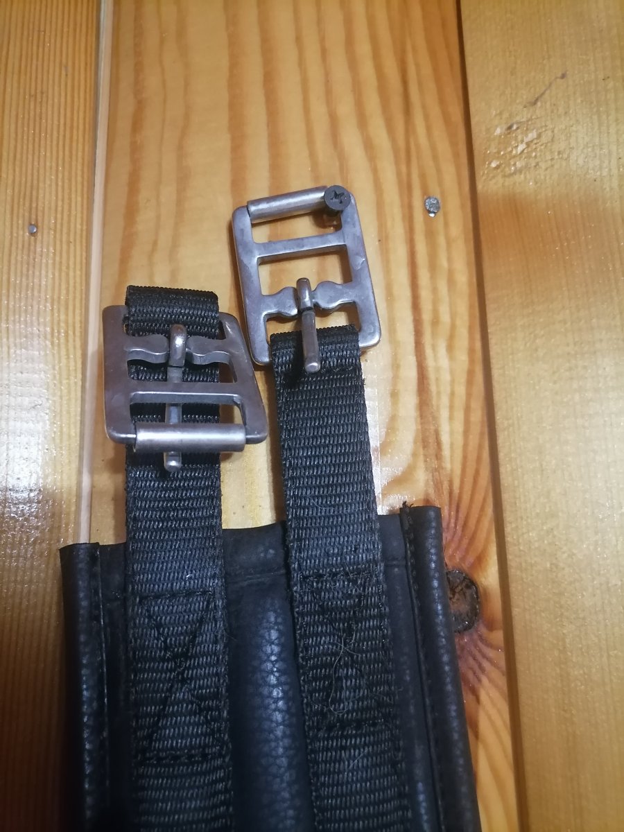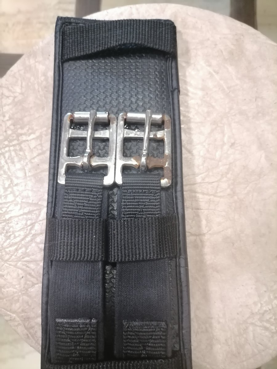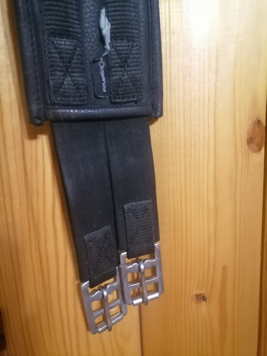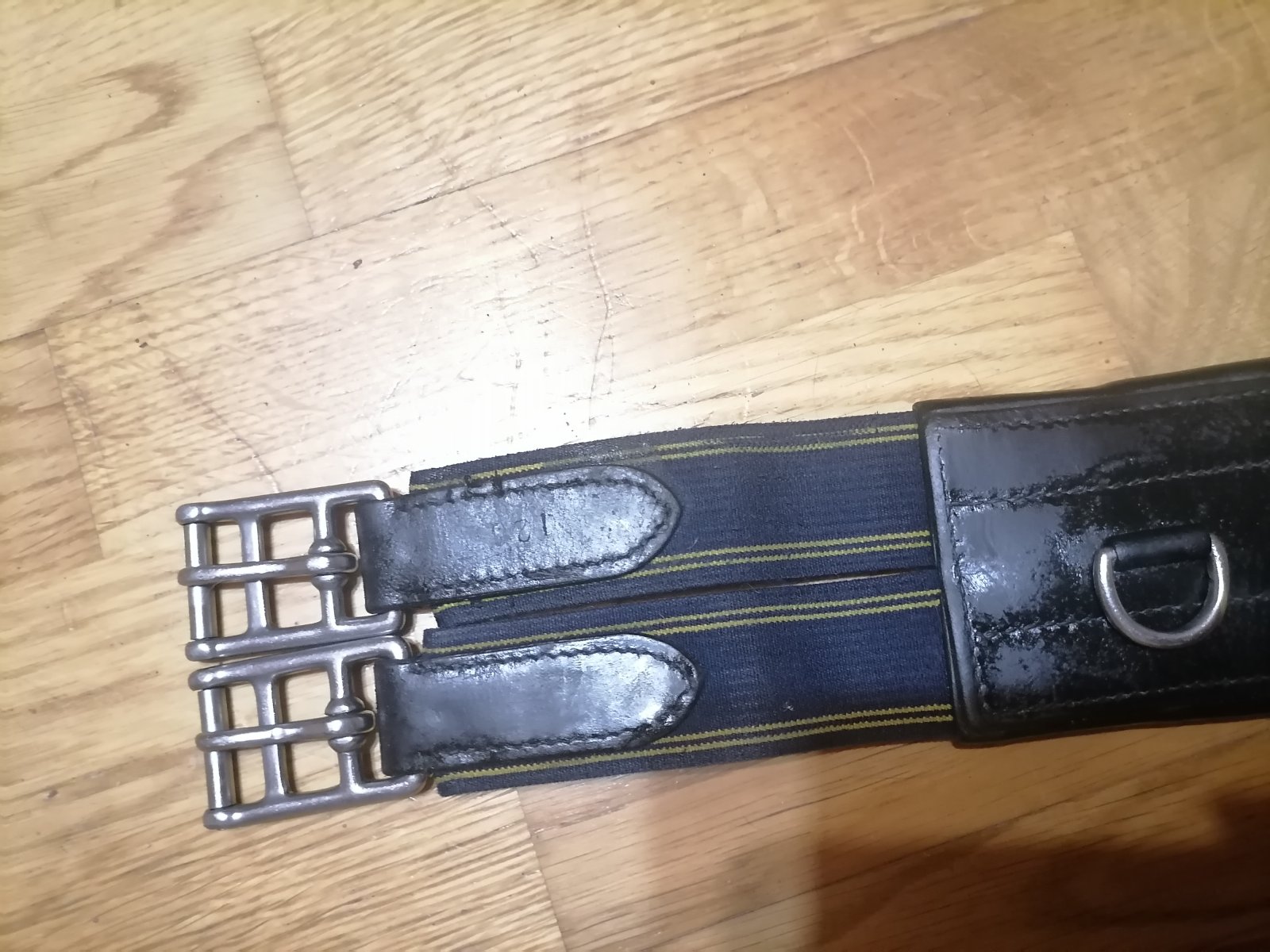 3. Подпруга выездковая, вся целая. Немного подржавели сами застежки. Резинки все целые. 51см от пряжки до пряжки, и 67 см вся длина.