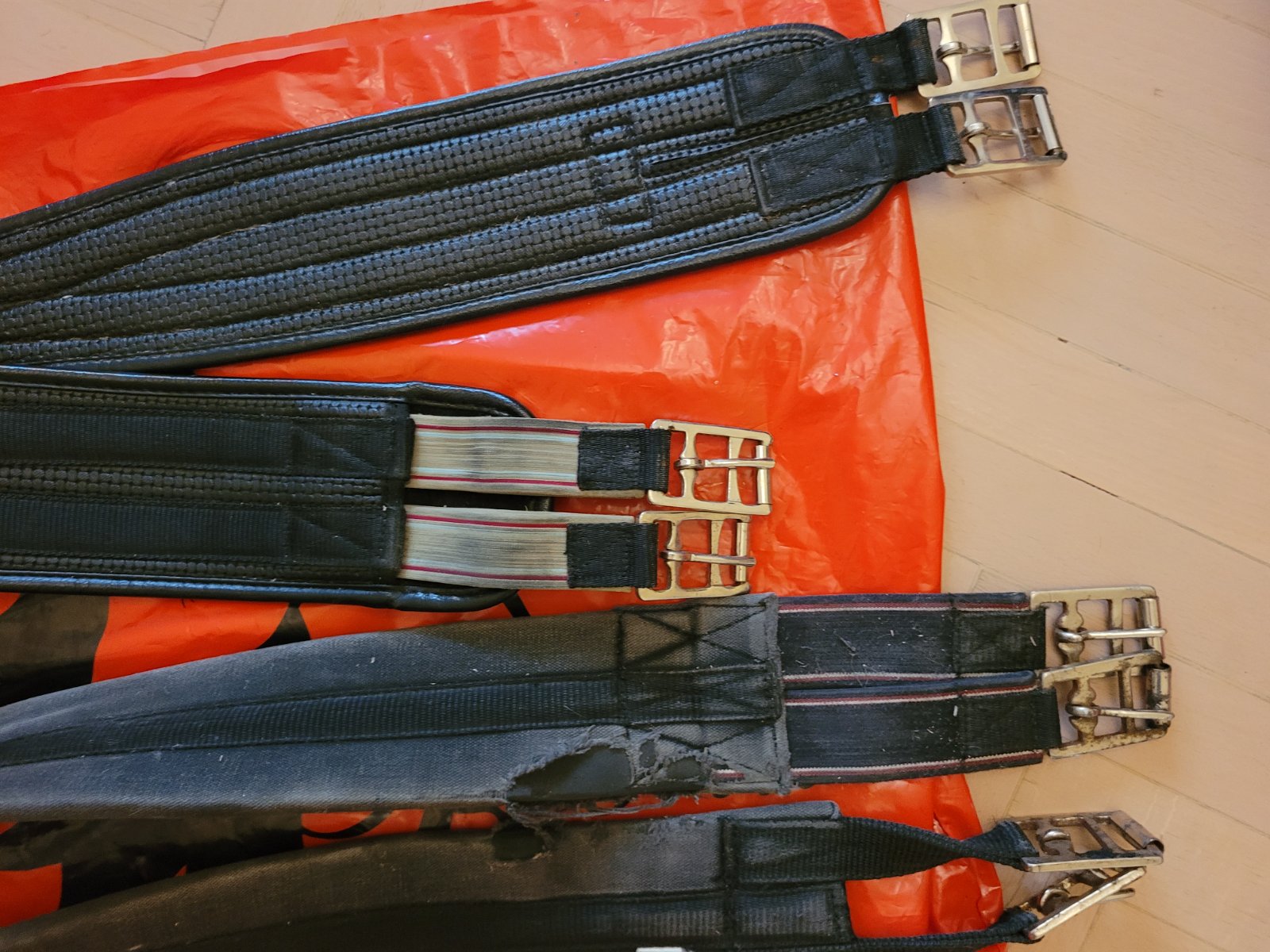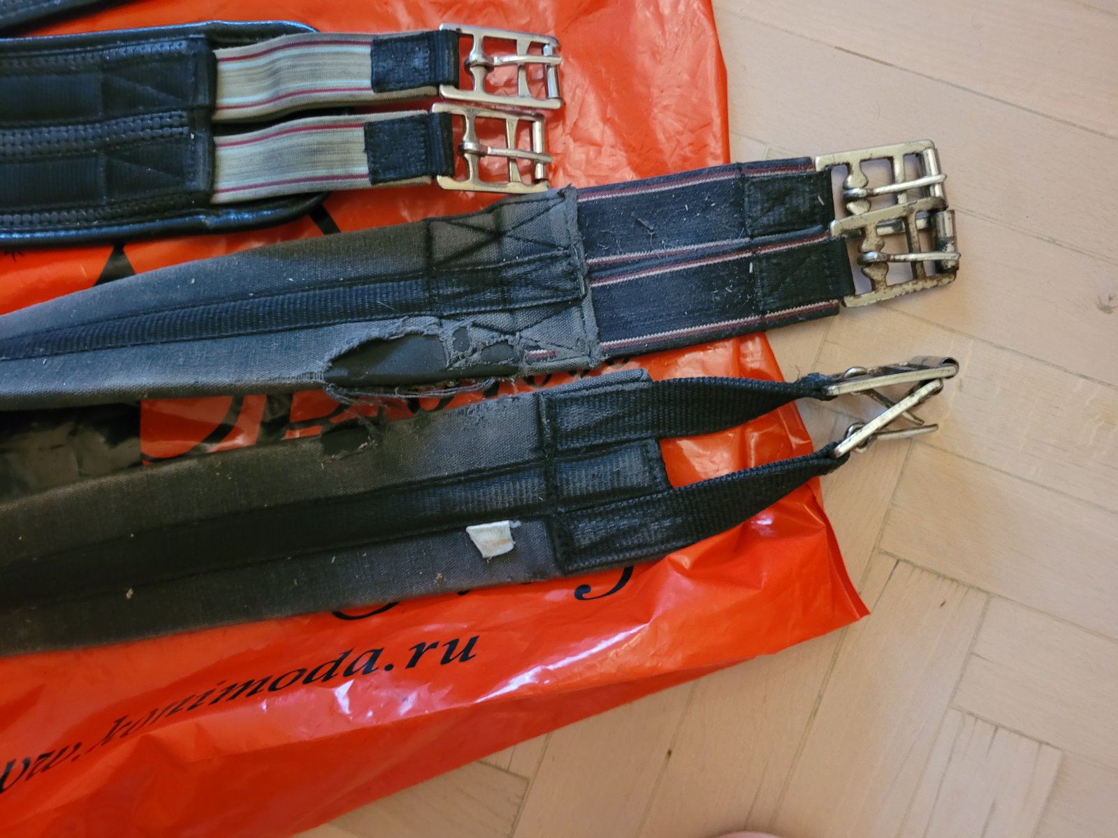Конкурные обе 125 см. На одной рваный чехол, сама подпруга, замки и застёжка в прекрасном состоянии.
