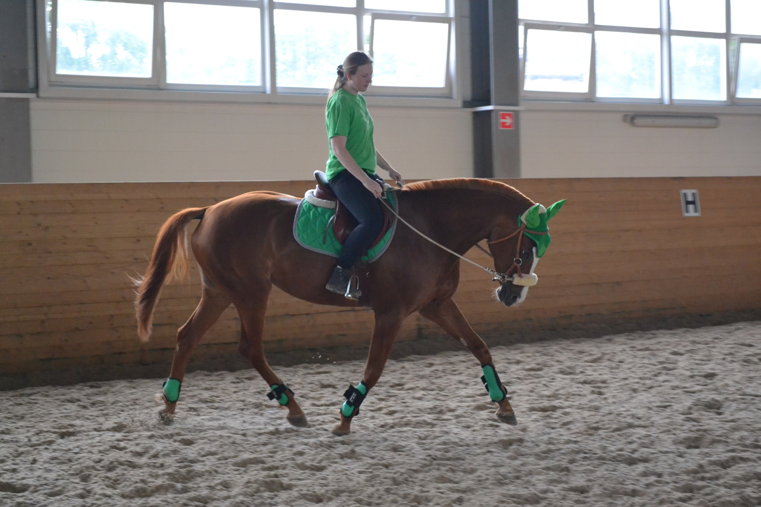 Практика: Уход за лошадьми, моцион. Тренировки по конкуру. Выступала за Президентский полк.