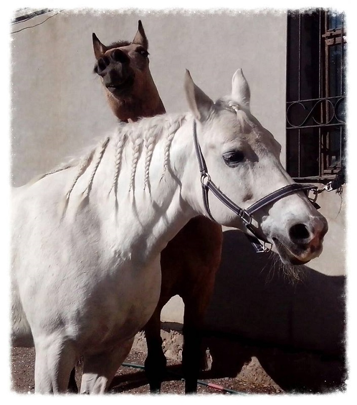 А, ну и да, еще про наш нынешний распорядок дня. Рано утром вытряхиваю их гулять, если Гугла уже встала. Если еще лежит и спит, просто открываю дверь на улицу и иду завтракать. Когда она встала, вытряхиваю на коновязь и процедурим в тазиках с водой, а Хазар бродит по двору, потом завтрак, потом веду гулять, развешиваю рептухи в тени, чтобы коням было не интересно выходить на солнце