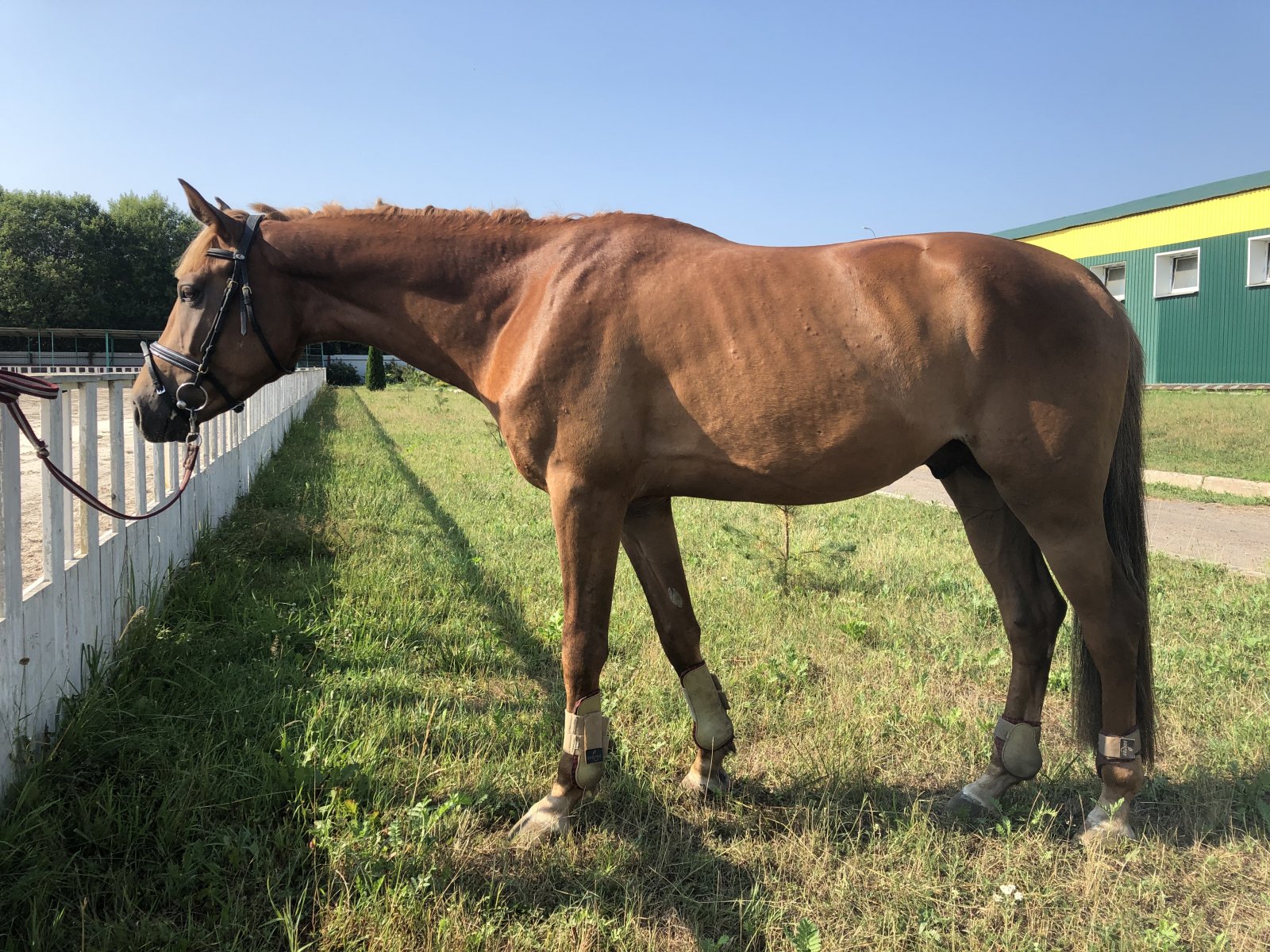 Костистый крепкий, на сухих ногах. Без травм, вредных привычек и денниковых пороков.