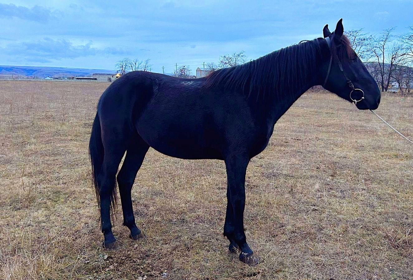 Продается полукровный жеребец (англо-карачай) вороной масти, 3 года, рост 160. Заезжен, легкий в управление, удобный, абсолютно безопасный в быту, отлично переносит вет.манипуляции, расчищается. Подойдет в любительский спорт или как отличная лошадь хобби-класса. По здоровью никаких проблем не имеет, с рождения в одних руках. Находится в Карачаево-Черкессии, доставка. 250 тысяч.