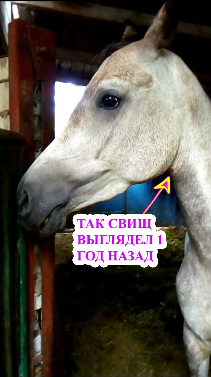 Есть вероятность, что причина свища в том, когда ей был годик, после прогулки на корде я её привязали к столбу на лужайке и она резко побежала с трензелем во рту, который её дернул так, что она аж кувыркнулась через голову.