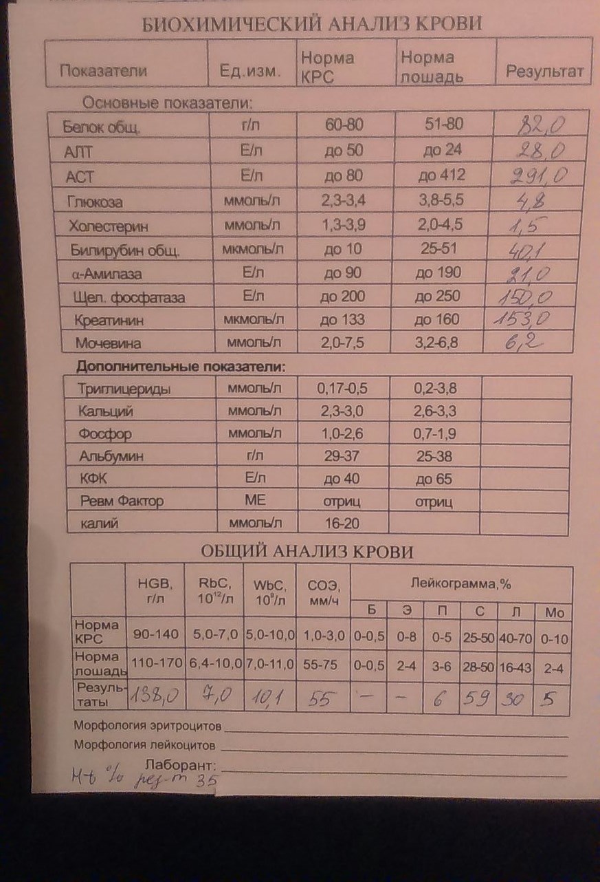 Добрый день! Помогите, пожалуйста, расшифровать анализ крови. Кобыла 8 лет, месяц назад отняли жеребенка.