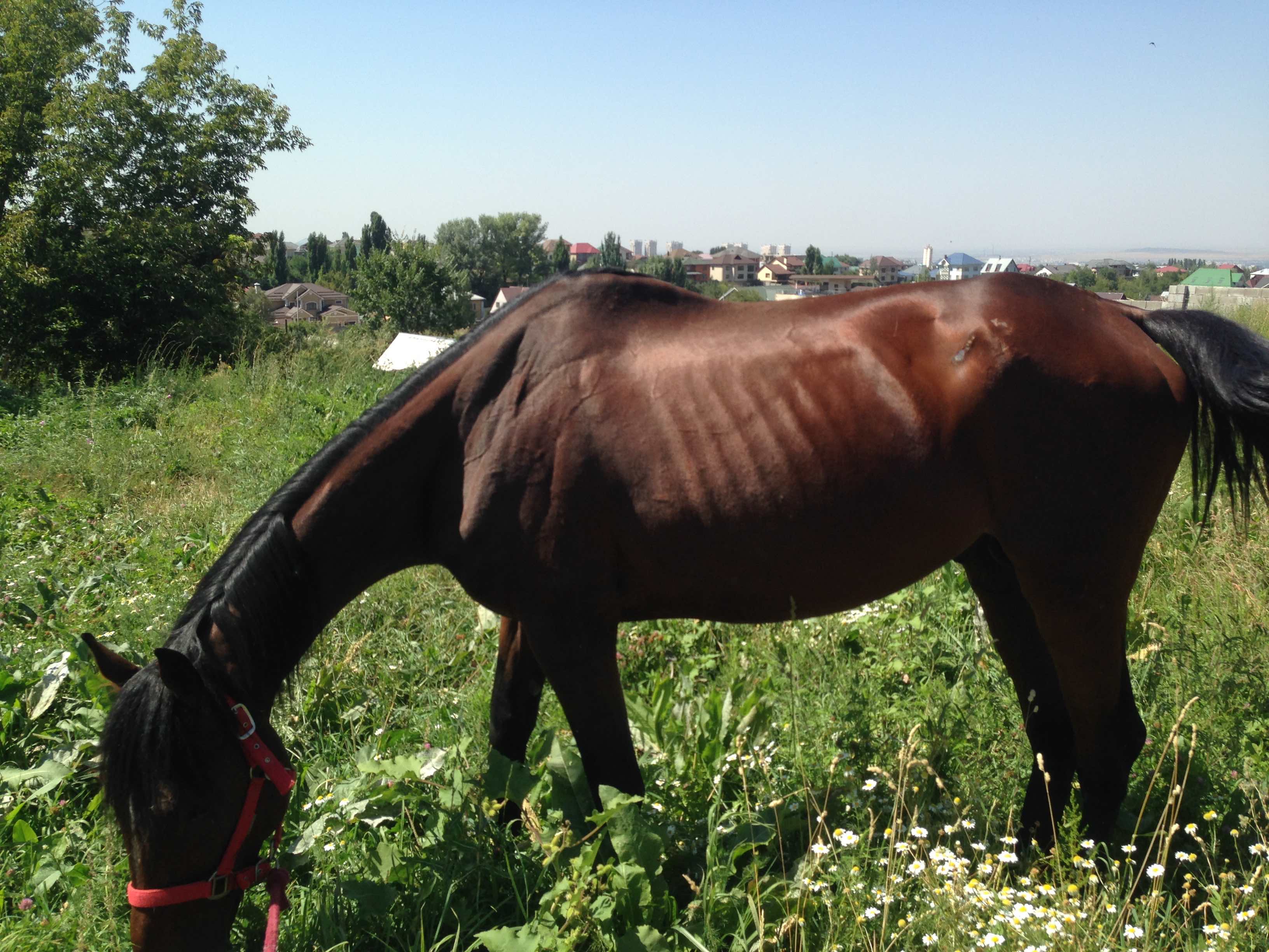 Вот и гастрит и истощение. Я ведь работал на нем. А когда купил его, он был подготовлен к скачкам, ни грамма жира, только мышцы, естественно не очень большой, но кости не торчали, а каждое волокно можно было разглядеть. После работы на нем он стоял и голодал, я работал до 12, а кормление как минимум было в 17. Сена не было. Вот и все обострение.
