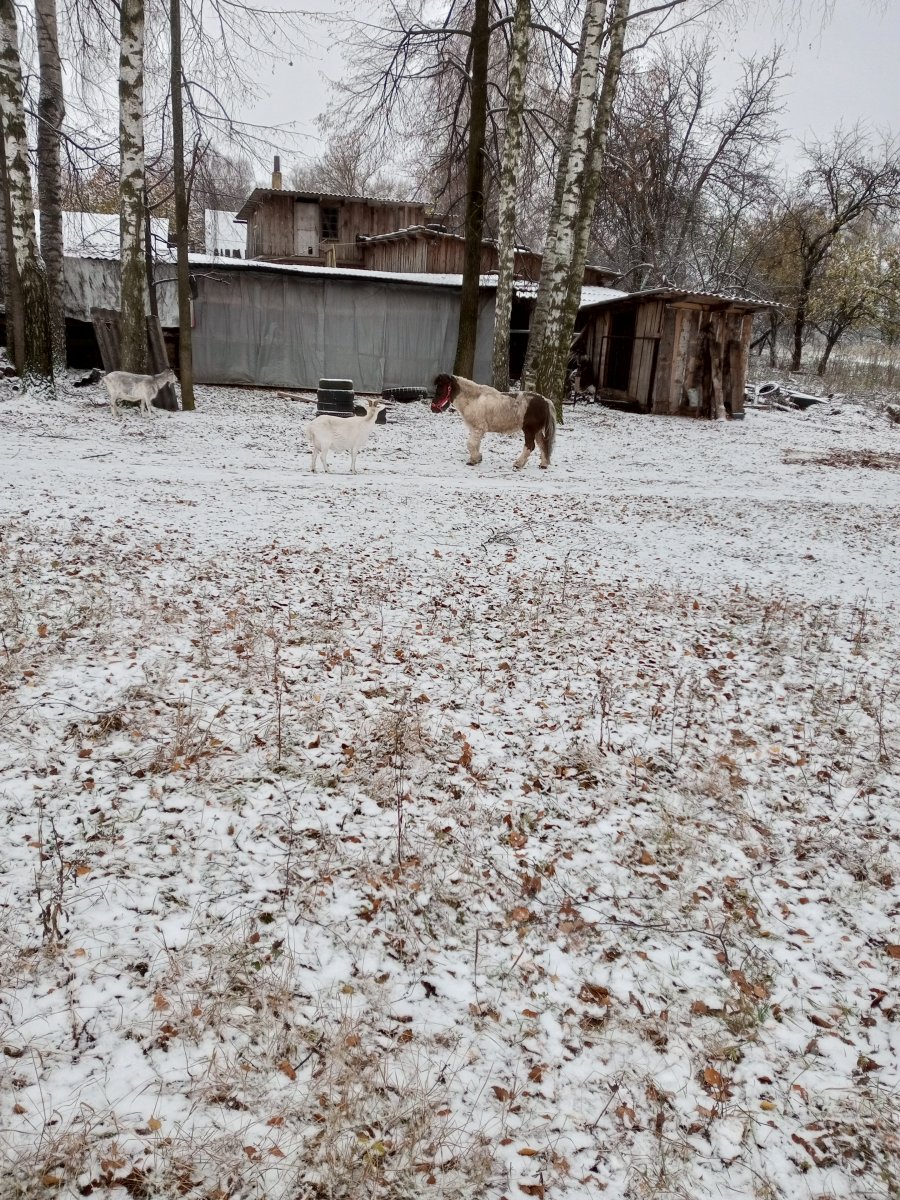 А ему пофигу на свою болезнь. Сегодня у нас снег с дождем. А перед этим дождь без снега. Сухо только в конюшне и на сеновале, где они сено едят. Пончик увидел белый снег, и пофигу ему, что под ним жидкая грязь. Лег и с удовольствием повалялся. А я его только подсушила маленько феном! Фотоаппарата не было с собой, но думаю, вы все представляете белую лошадку после грязевой ванны. ?