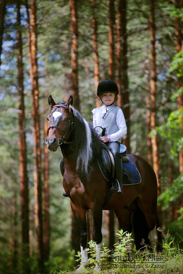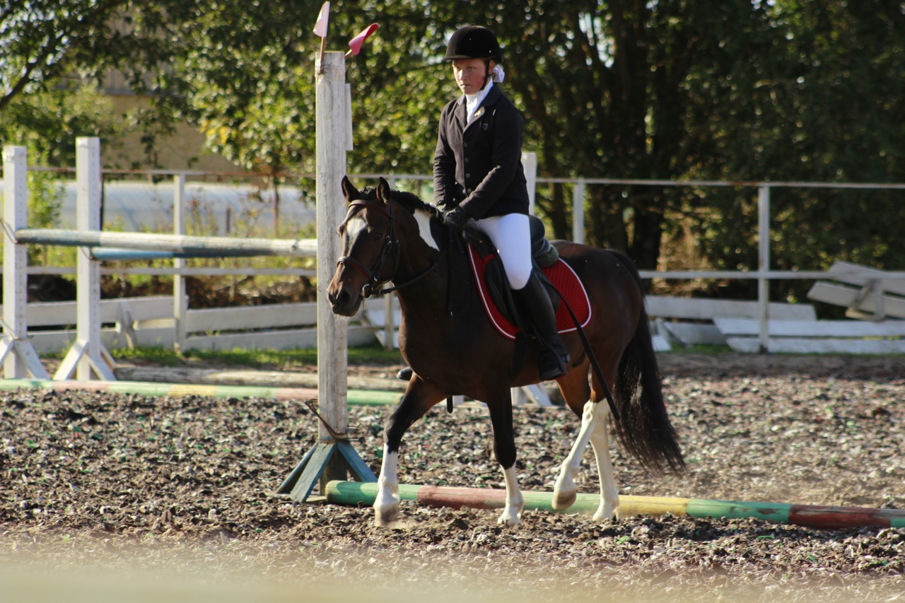 Не пуглива,добронравна.Стартовала в тестовых ездах,принимала участие в скачках.