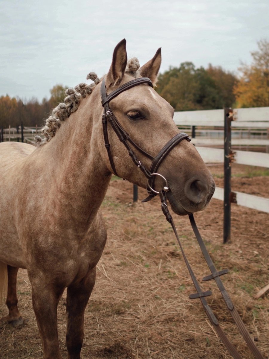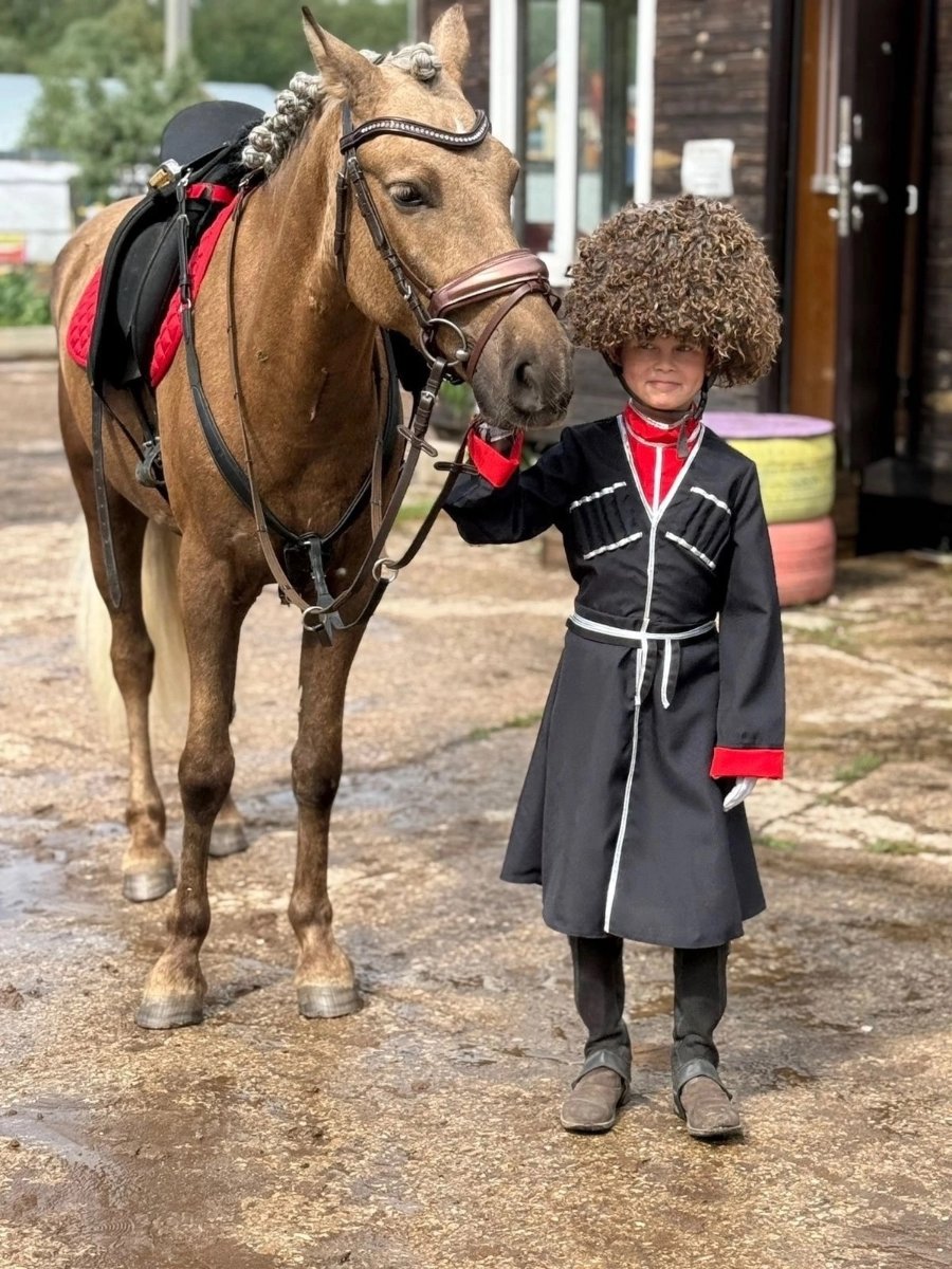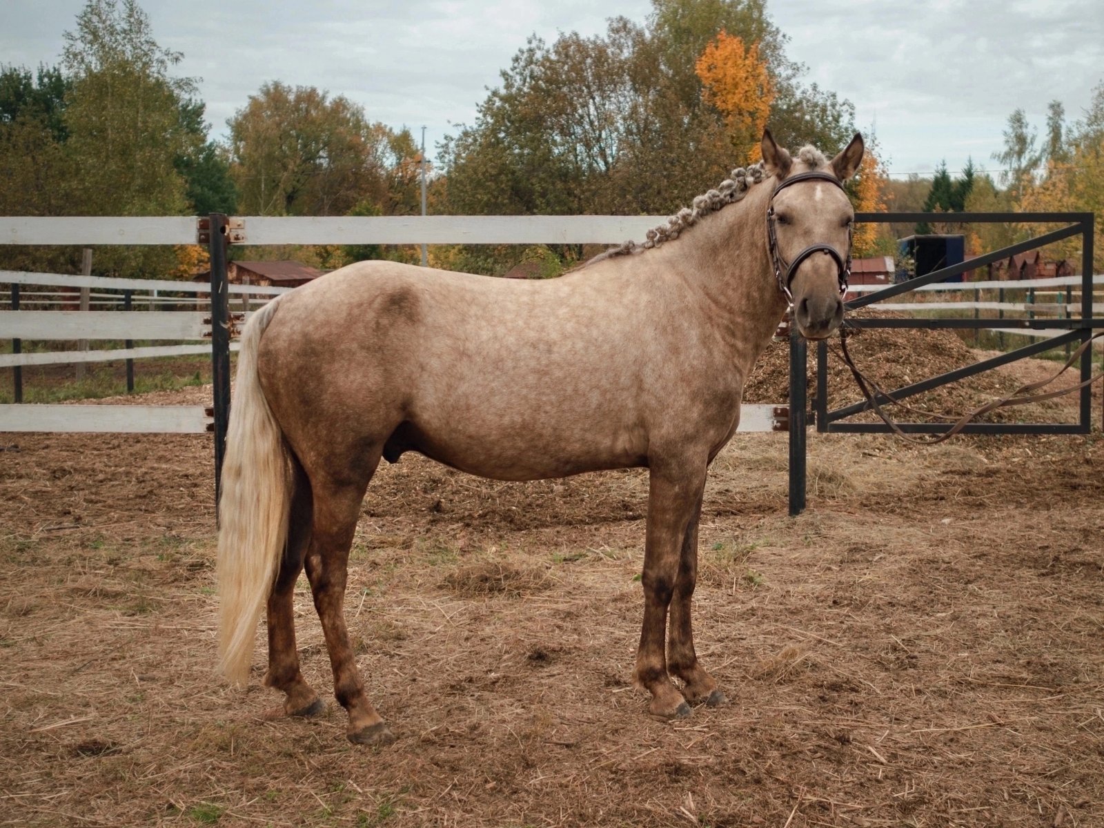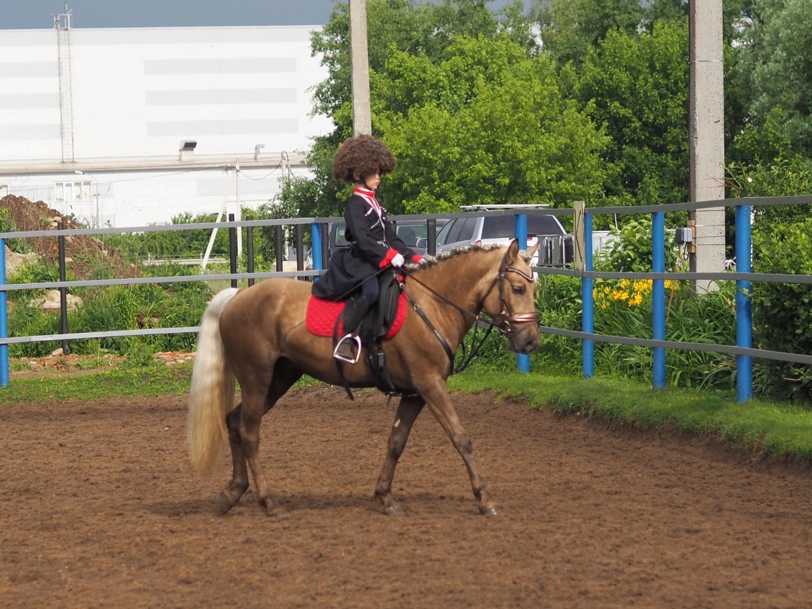 Заезжен, напрыган по одиночным до 80 см, шпринт до 110 см, выше не ставили. Ничего не боится, очень добрый и ласковый. Катает ребенка, управляется голосом. Гуляет в табуне, неконфликтный.