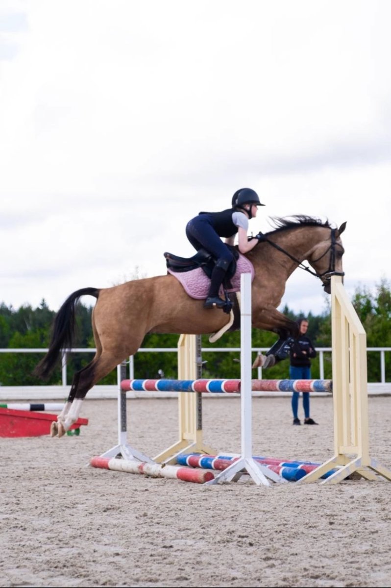 Старты - маршруты до 100 см. Дома - одиночные до 110 см. Хорошо выезжен, легкий на средства управления. Очень добрый и приятный в работе и быту.