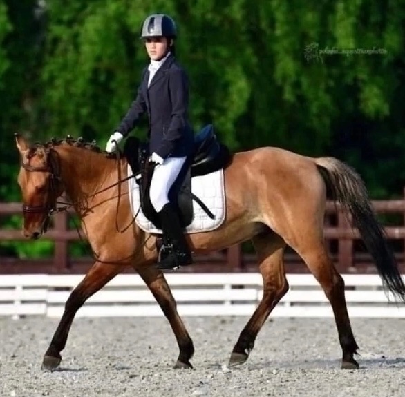 Старты - тесты для пони, ППД А (дебютировал 1 раз под слабым ребенком). Дома - прыгает крестики. Идеален в полях. Спокойный, добродушный, неконфликтный. Детей возит, как хрустальные вазы.