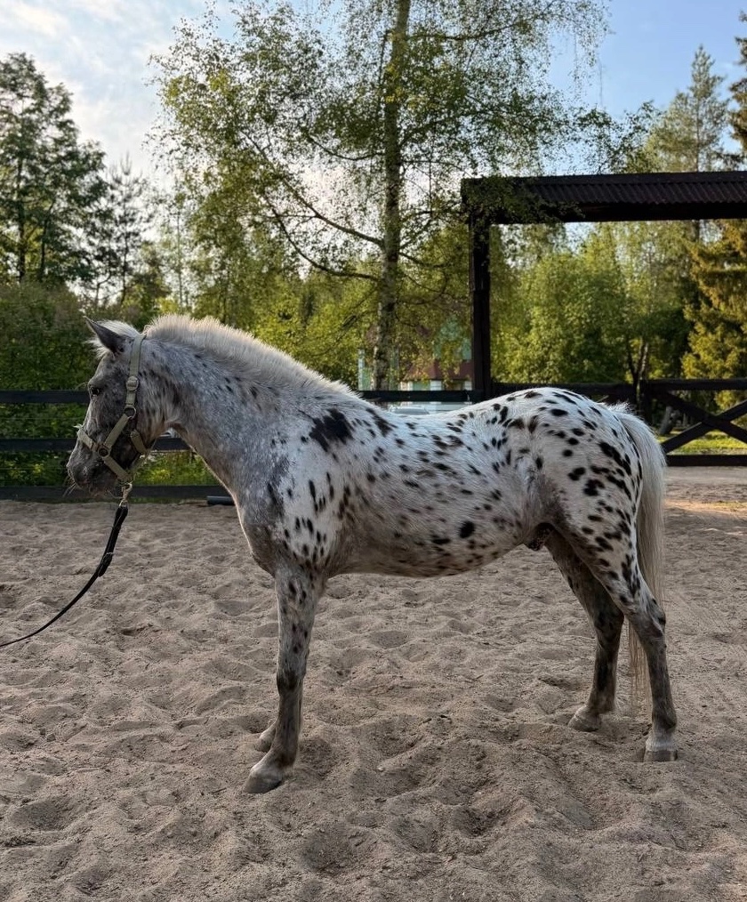 Заезжен, приучен ко всем манипуляциям. Знает работу в руках. Ходит под прокатом, ездят дети, но еще нужно подработать для стабильной езды под детьми. Отлично ладит с другими лошадьми, добрый.